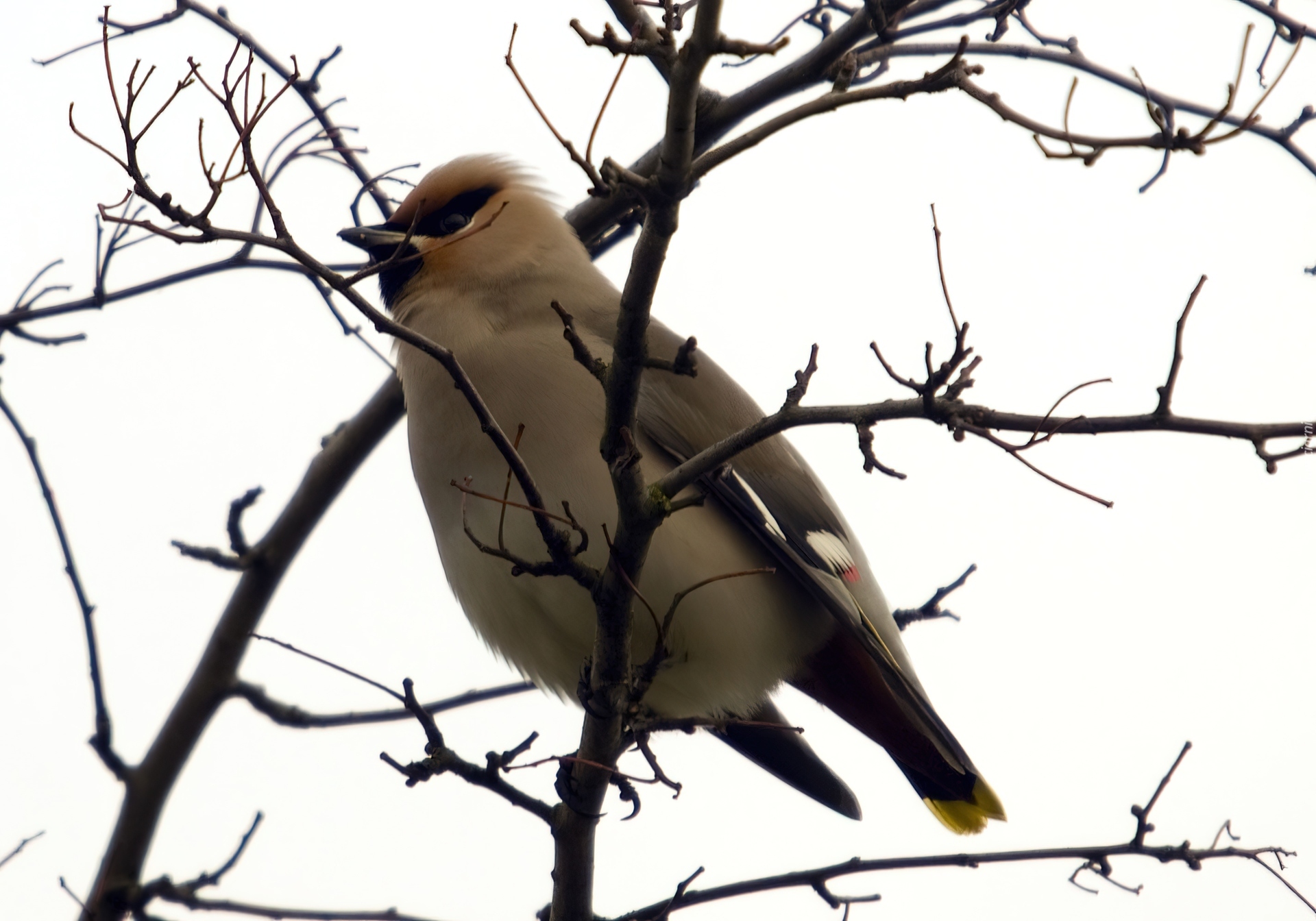Edytor tapety: Jemiołuszka, gałąź, czarno-żółty, ogon