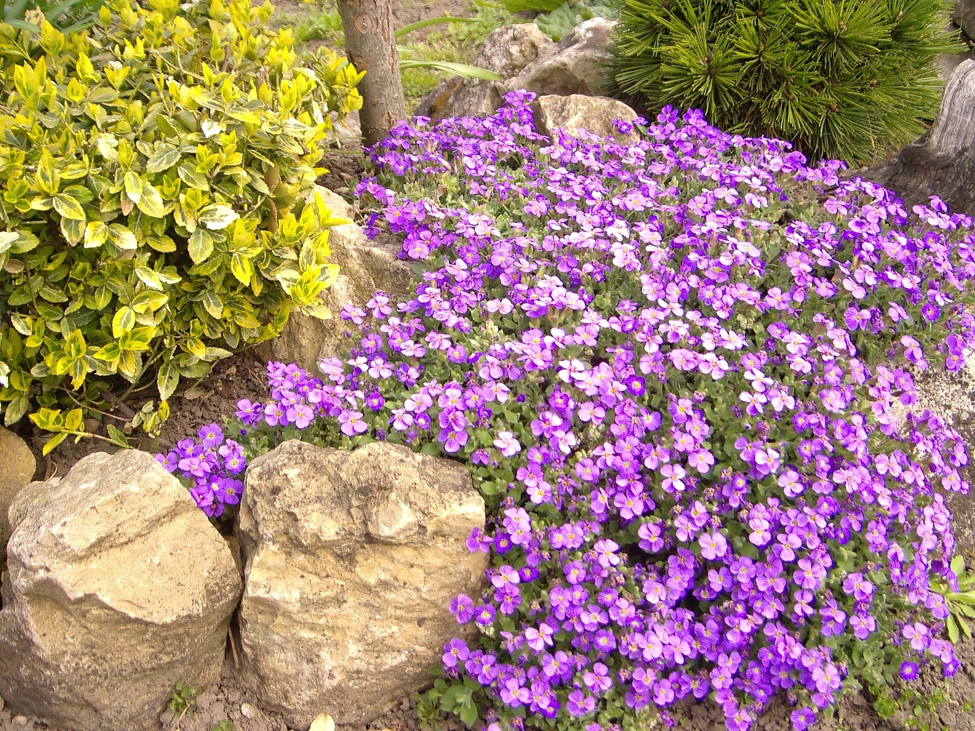 Edytor tapety: Żagwin ogrodowy, kamienie