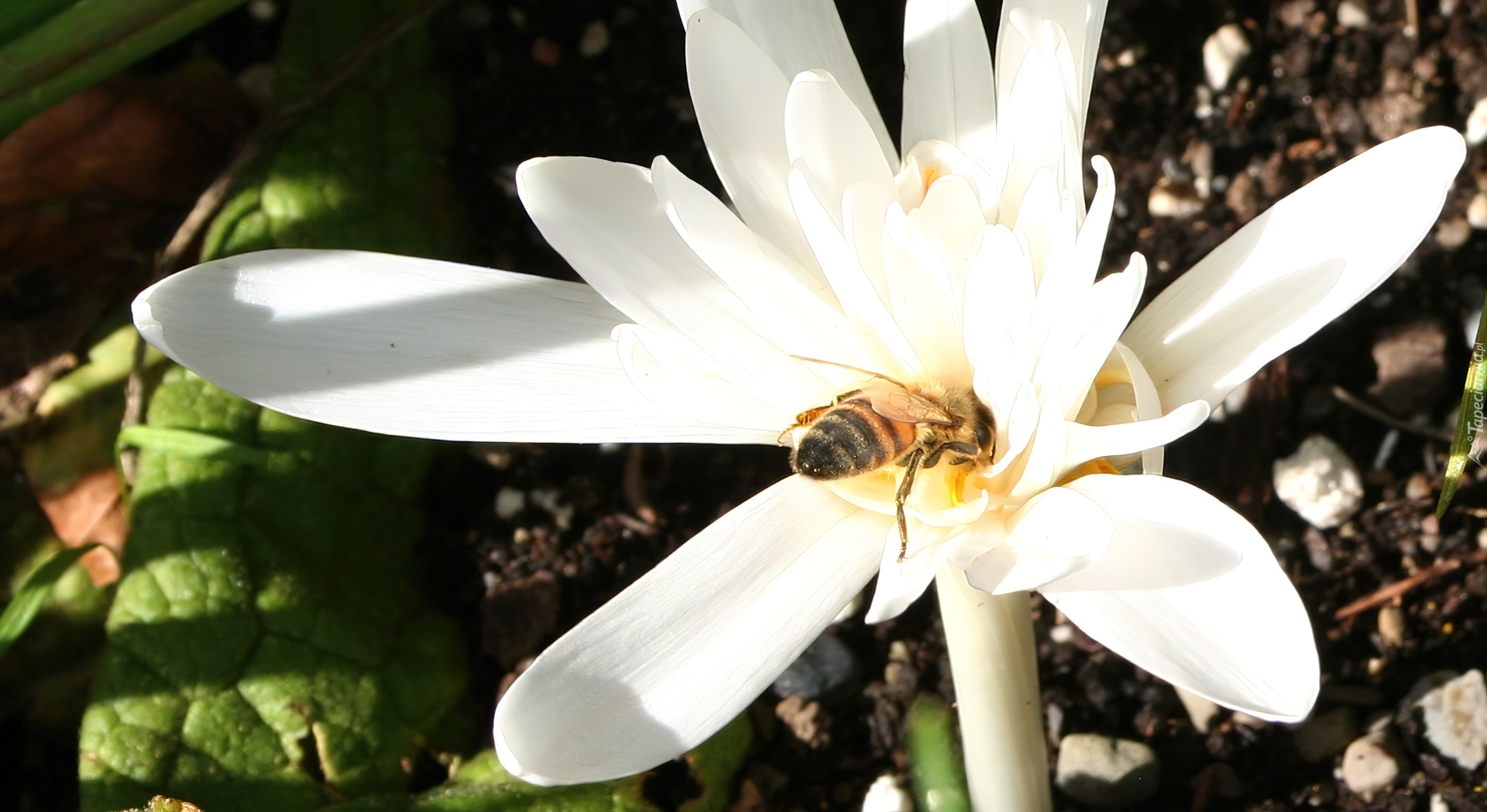 Edytor tapety: Biały, Zimowit, Pszczoła