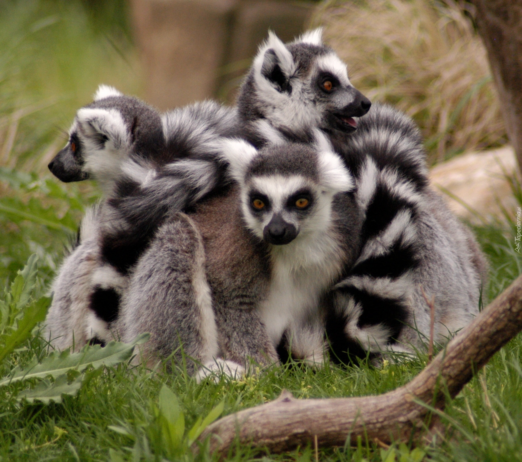 Edytor tapety: Lemury katta, Trawa, Gałąź