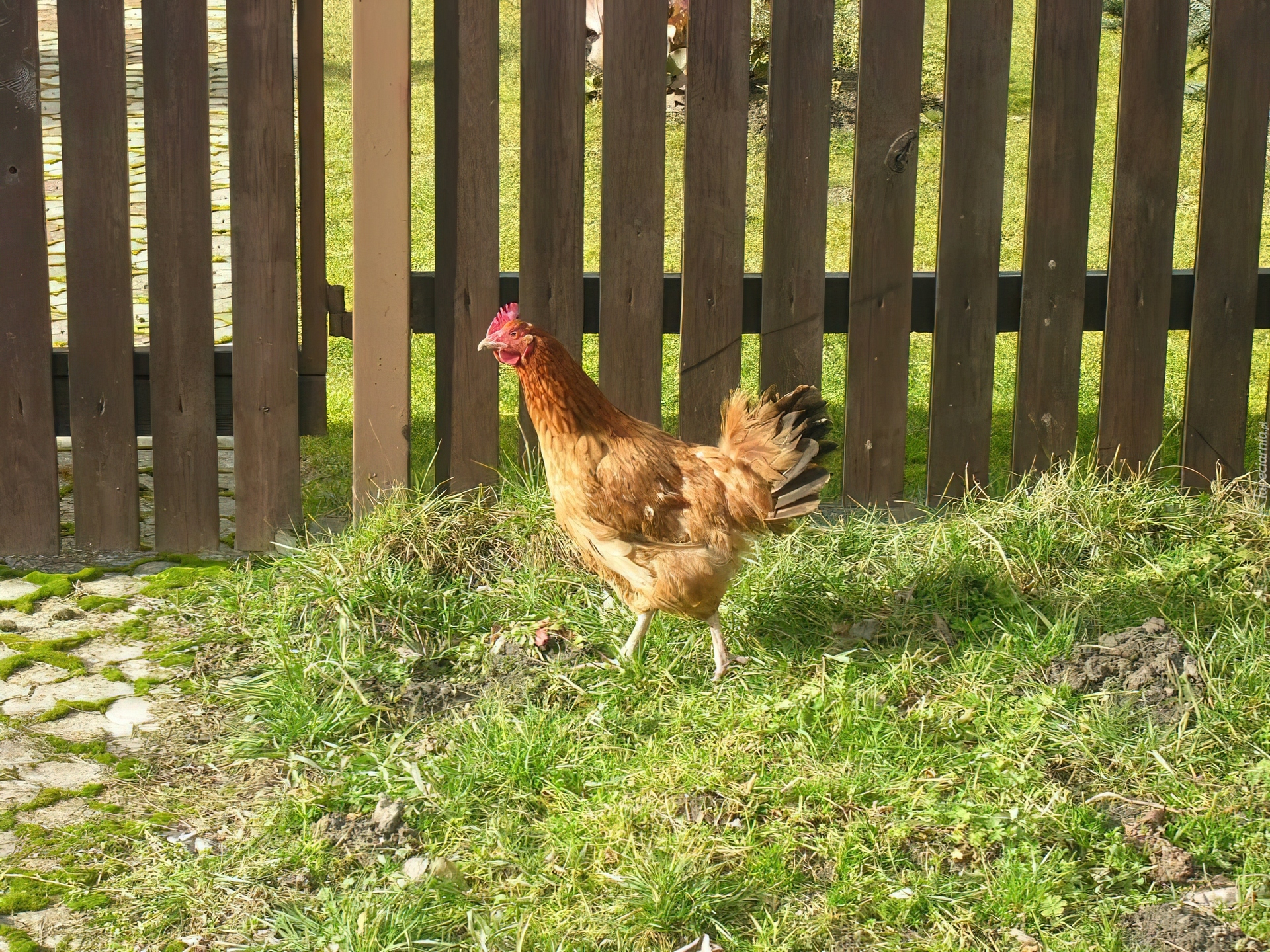 Edytor tapety: Kura, Trawa, Drewniany, Płot