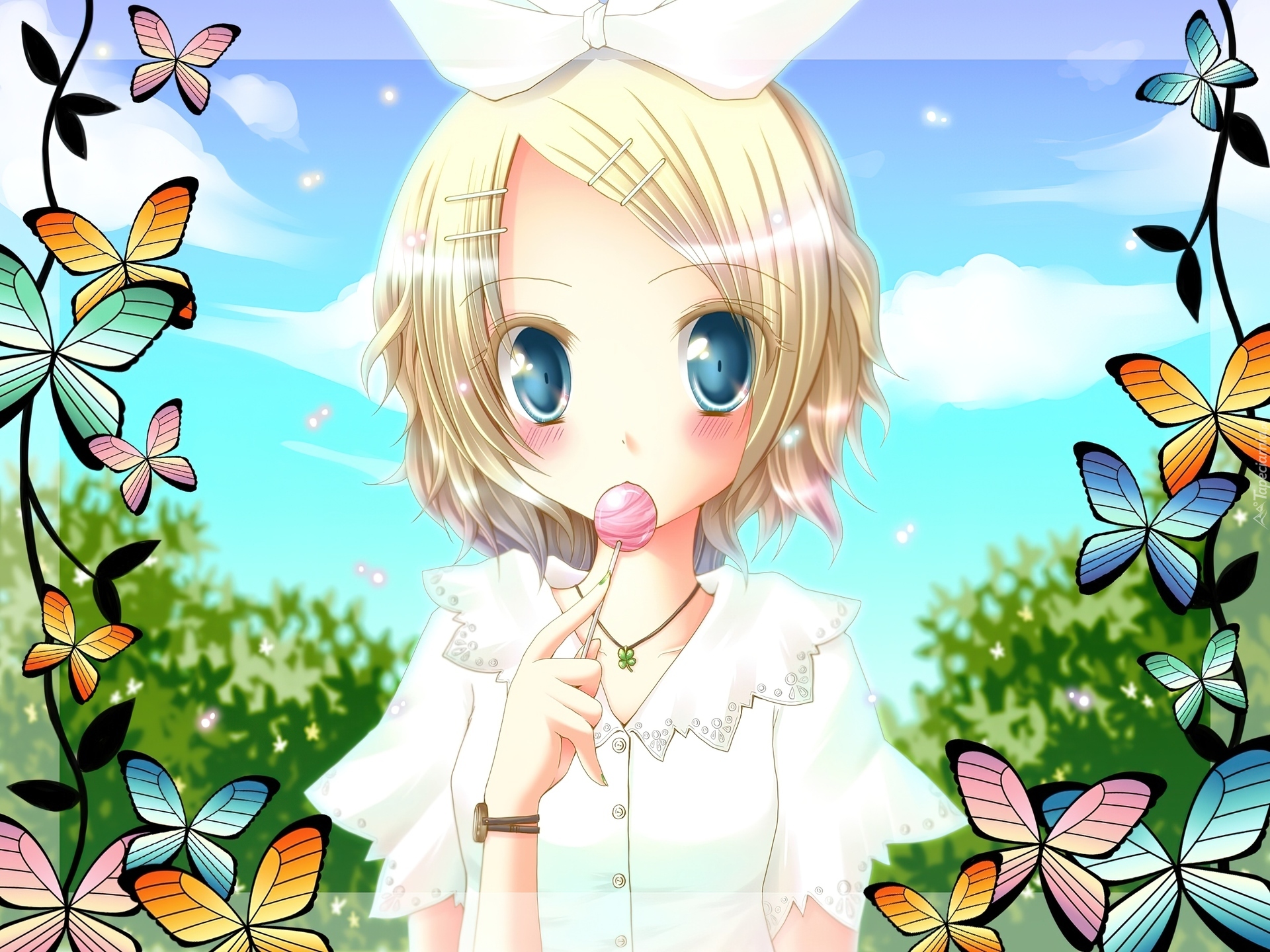 Edytor tapety: Vocaloid, Rin Kagamine, Lizak, Motyle