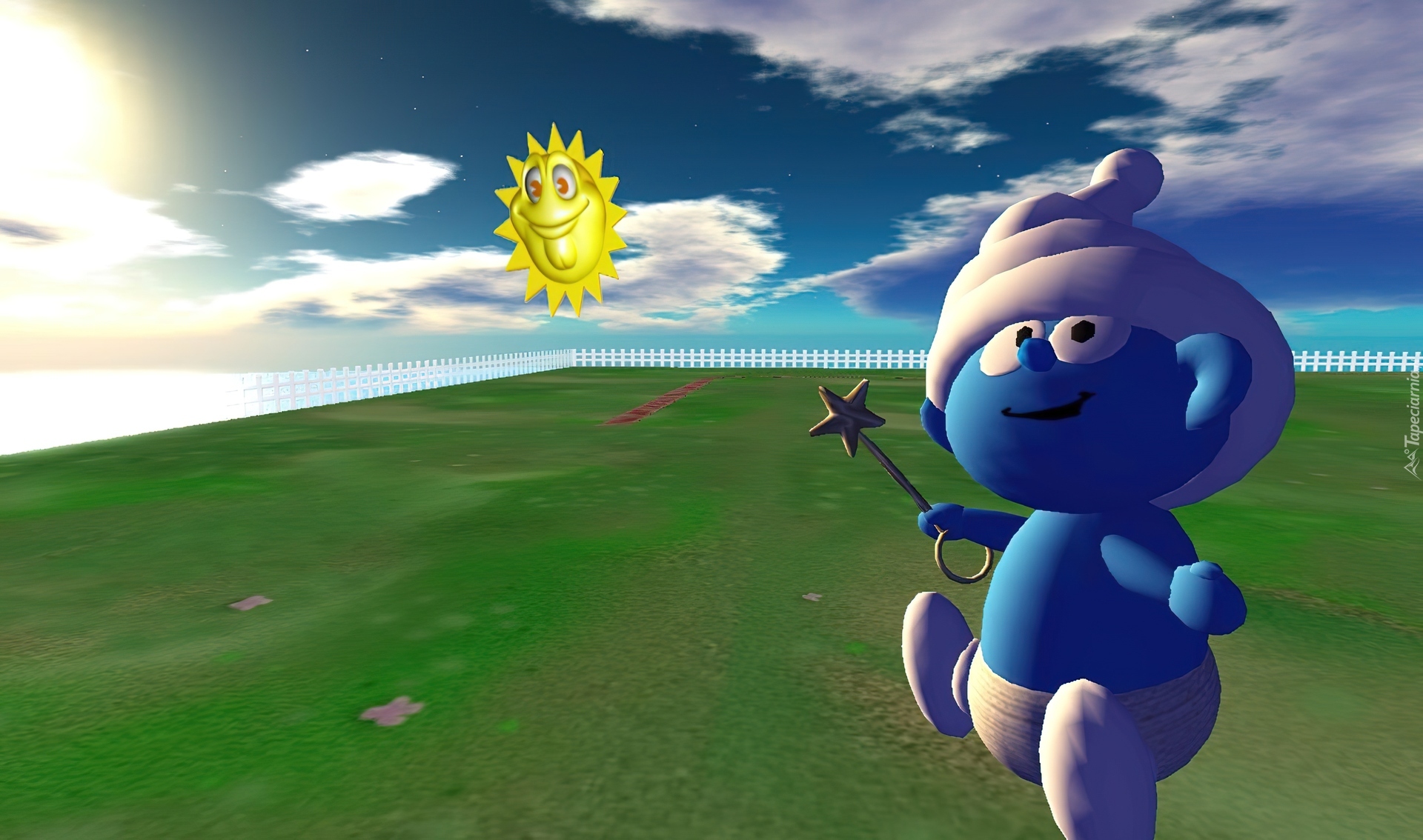 Edytor tapety: Smerfy, The Smurfs, Zielona, Trawa, Chmury