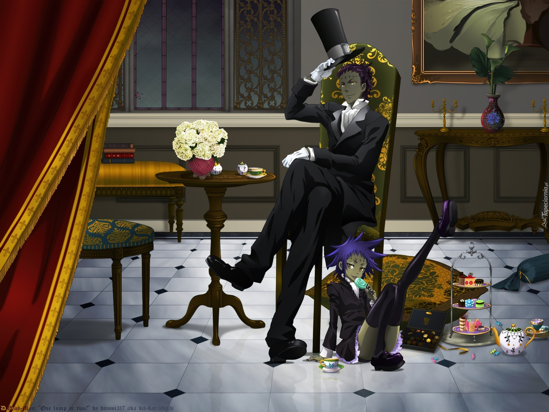 Edytor tapety: D.Gray-Man, Stolik, Kwiaty, Dzbanek, Filiżanka