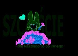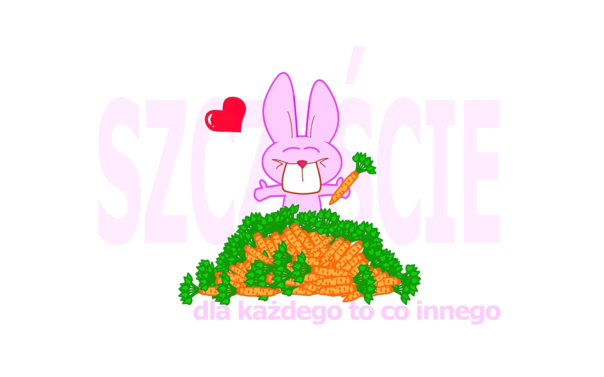 Edytor tapety: Różowy,królik,marchewki,napis,szczęście