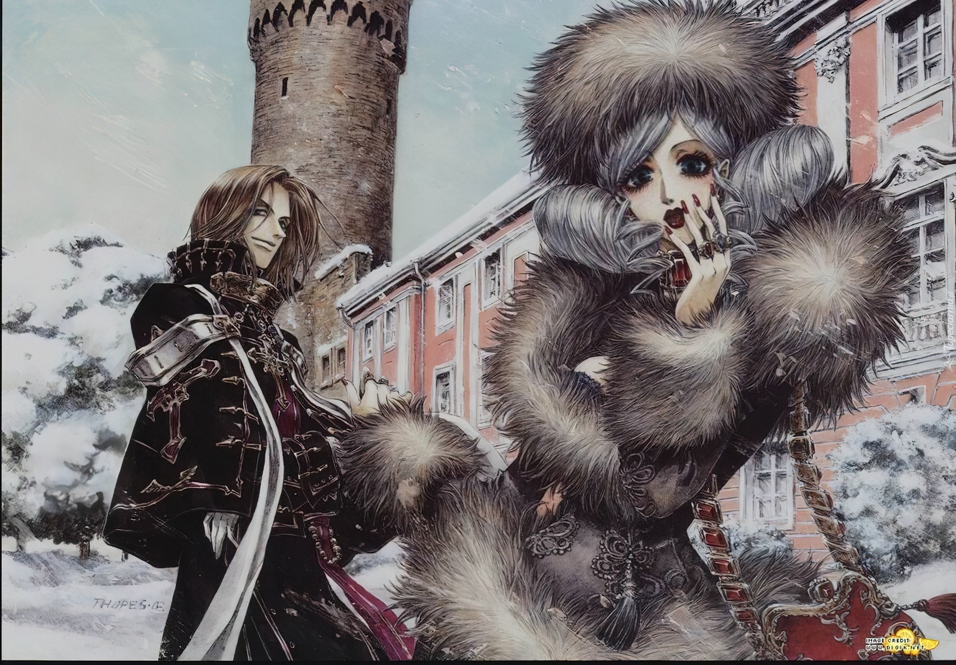 Edytor tapety: Trinity Blood,postacie,futro,zamek,zima