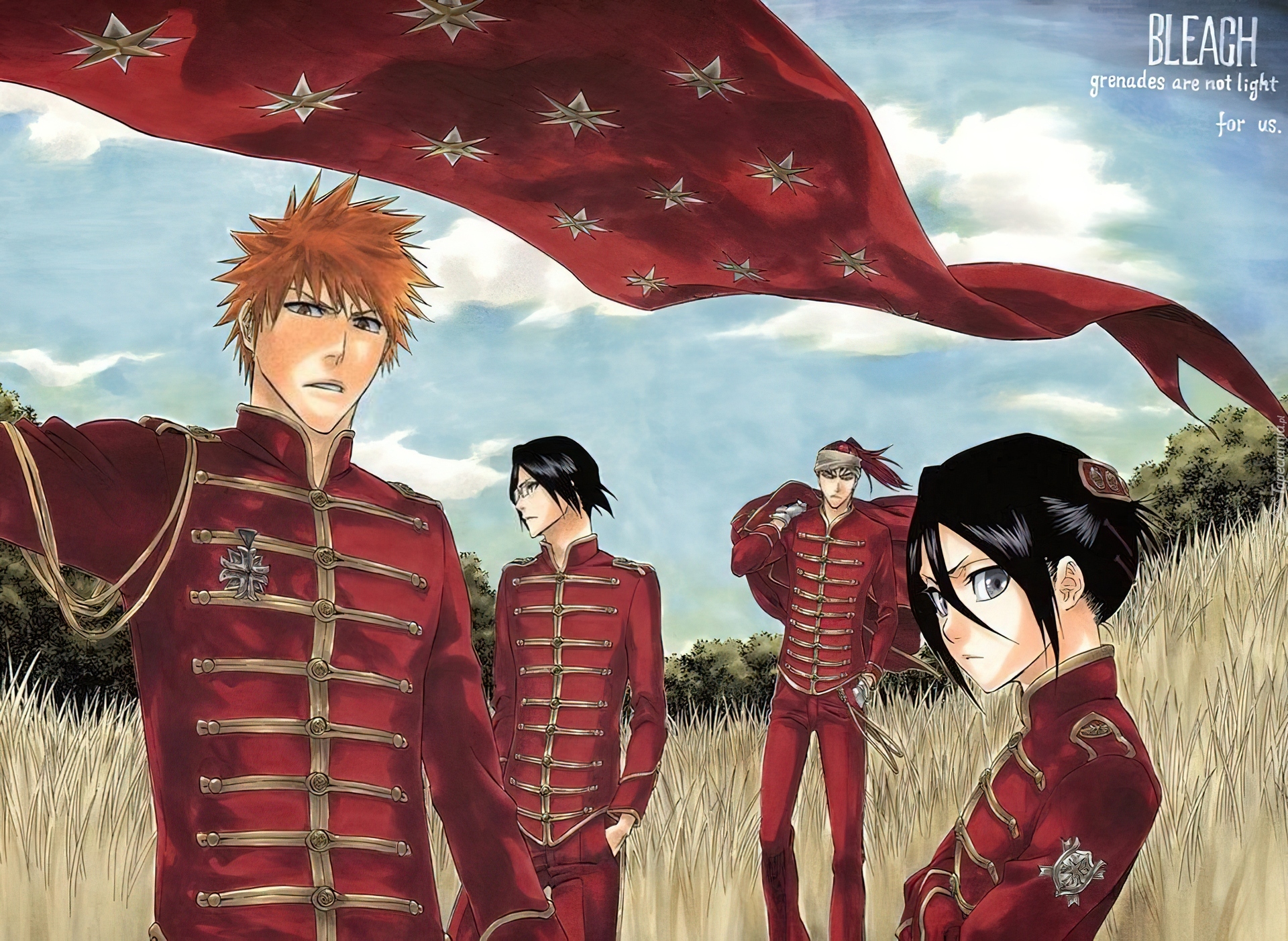 Edytor tapety: Bleach,postacie,czerwona,flaga,pole