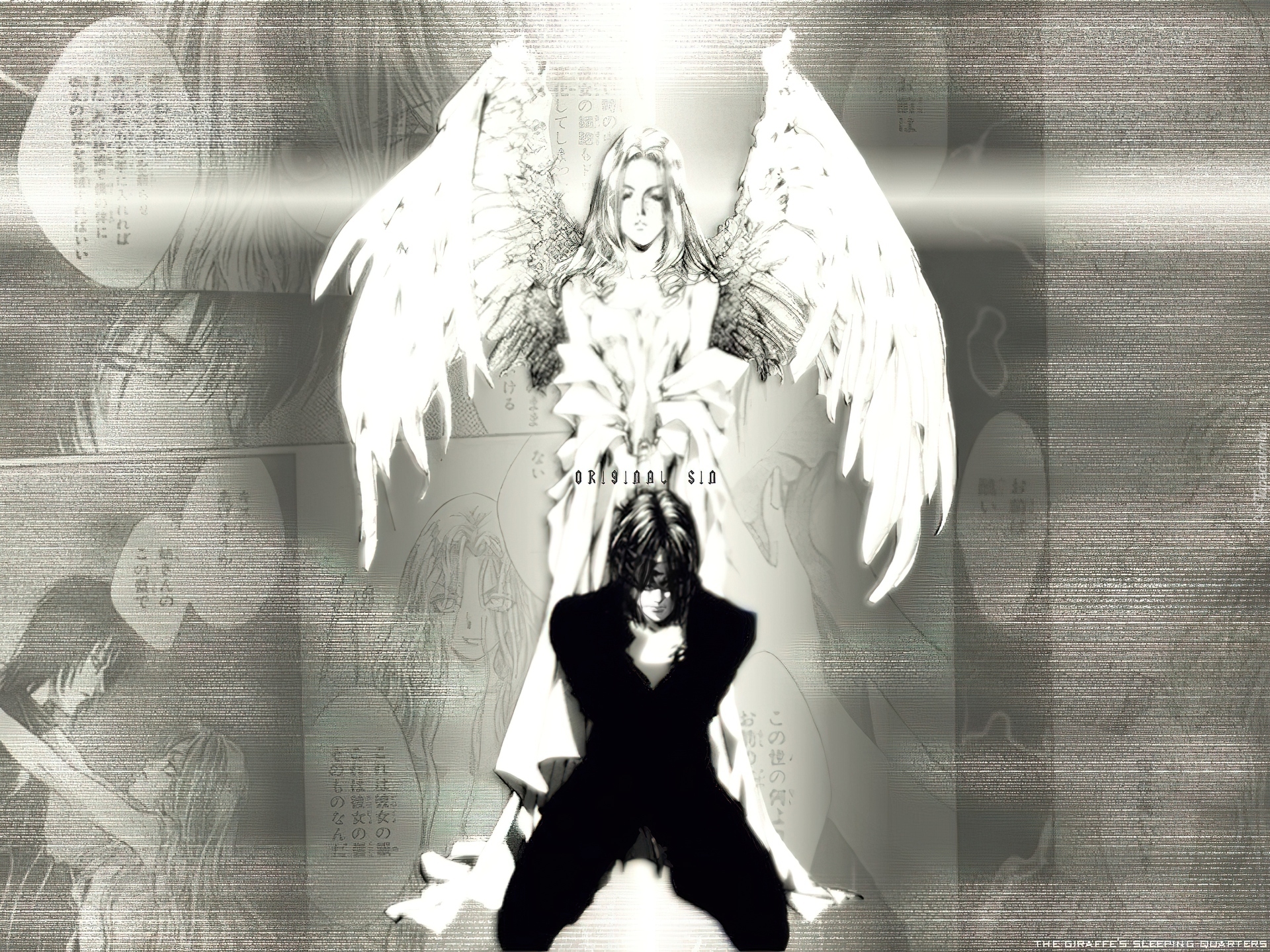 Edytor tapety: Angel Sanctuary, anioł, biało, czarne