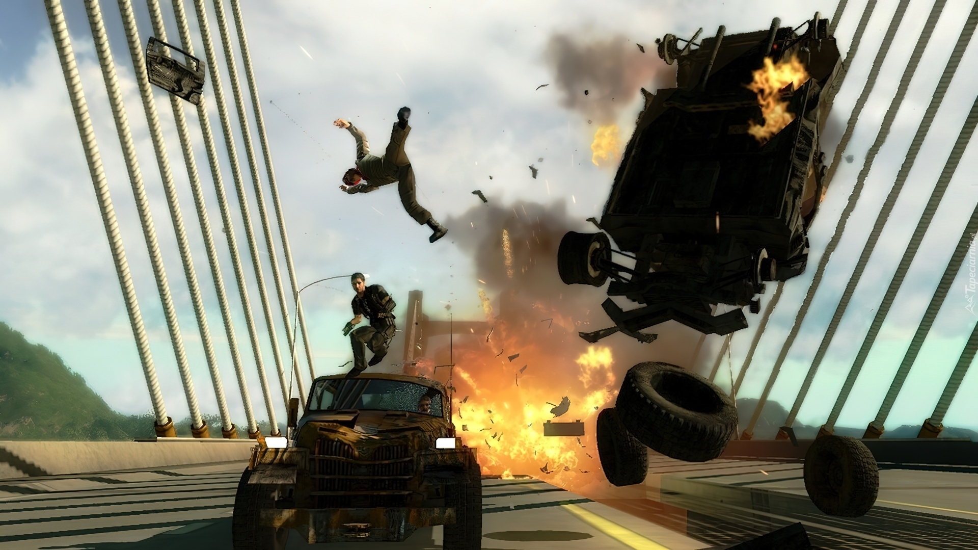 Edytor tapety: Just Cause, Most, Samochody, Pożar