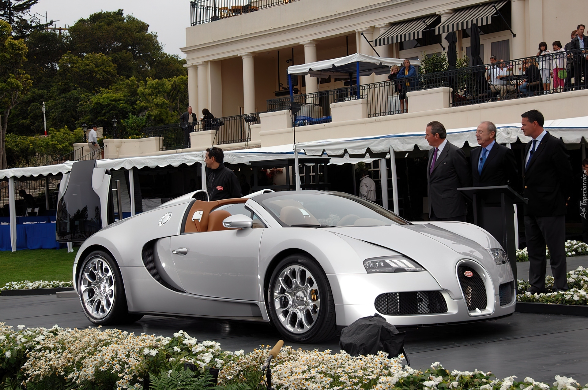 Edytor tapety: Srebrny, Veyron, Cabriolet, Wystawa