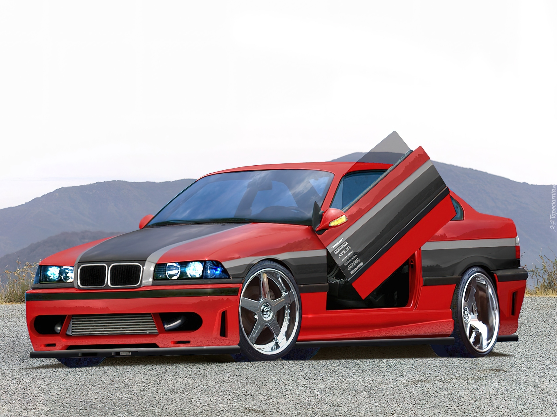 Edytor tapety: Czerwony, Czarny, BMW 3, E36, Tuning
