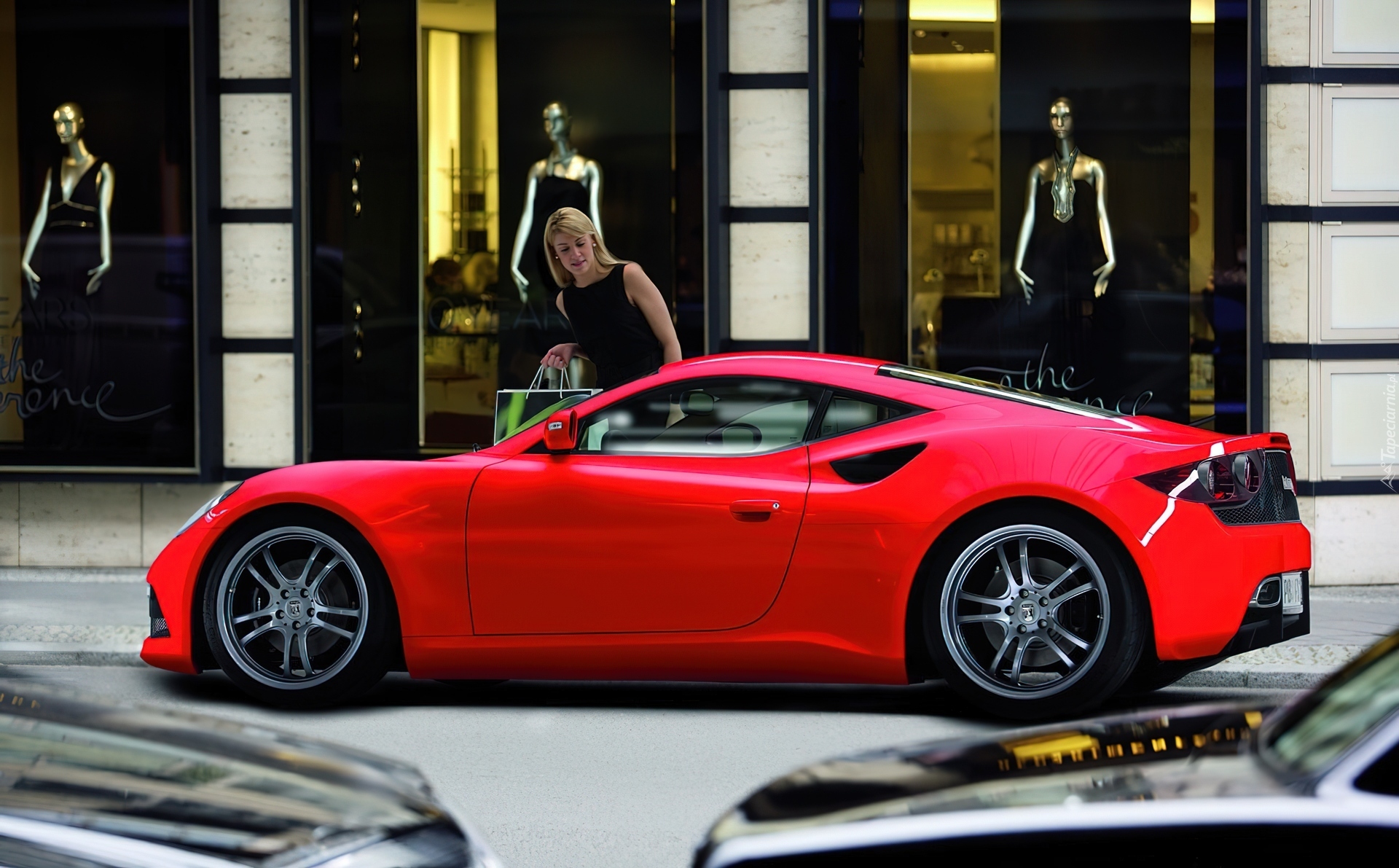 Edytor tapety: Czerwona, Artega GT, Kobieta, Reklama