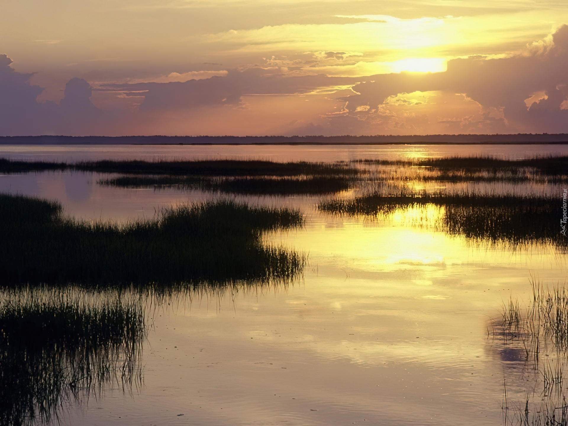 Edytor tapety: Zachód Słońca, Bagno
