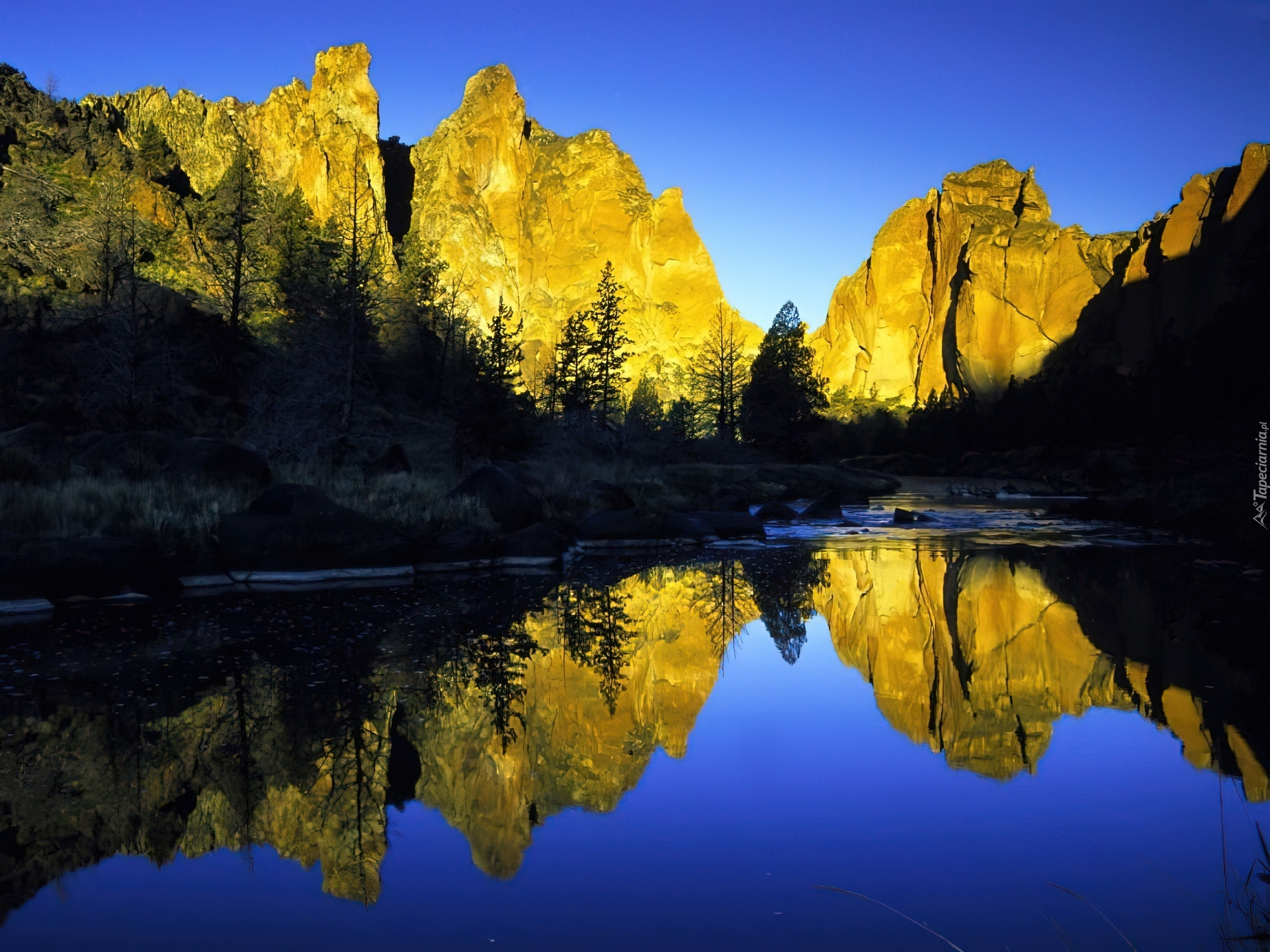 Edytor tapety: Zachód Słońca, Rzeka, Góry