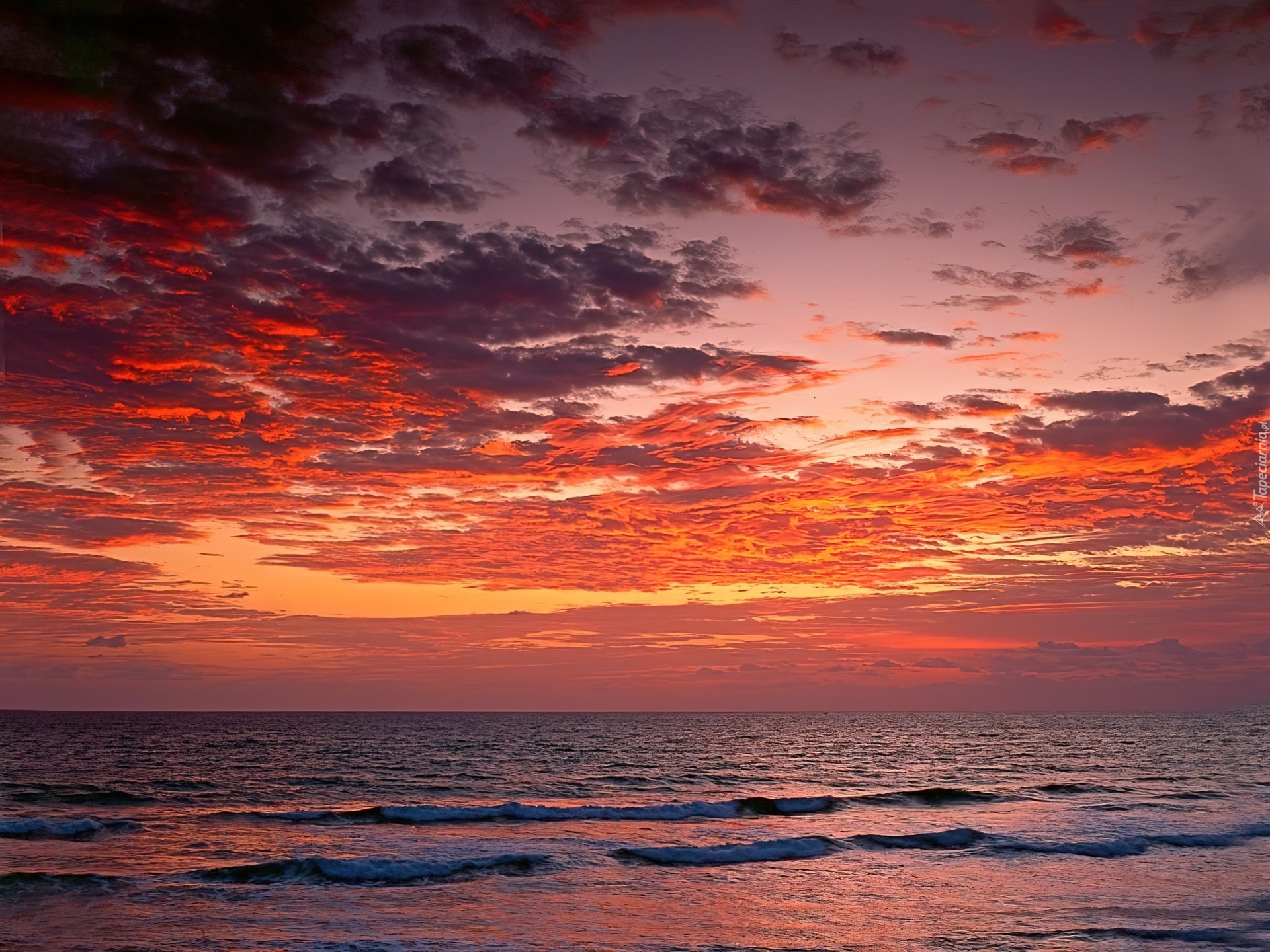 Edytor tapety: Zachód Słońca, Morze, Chmury