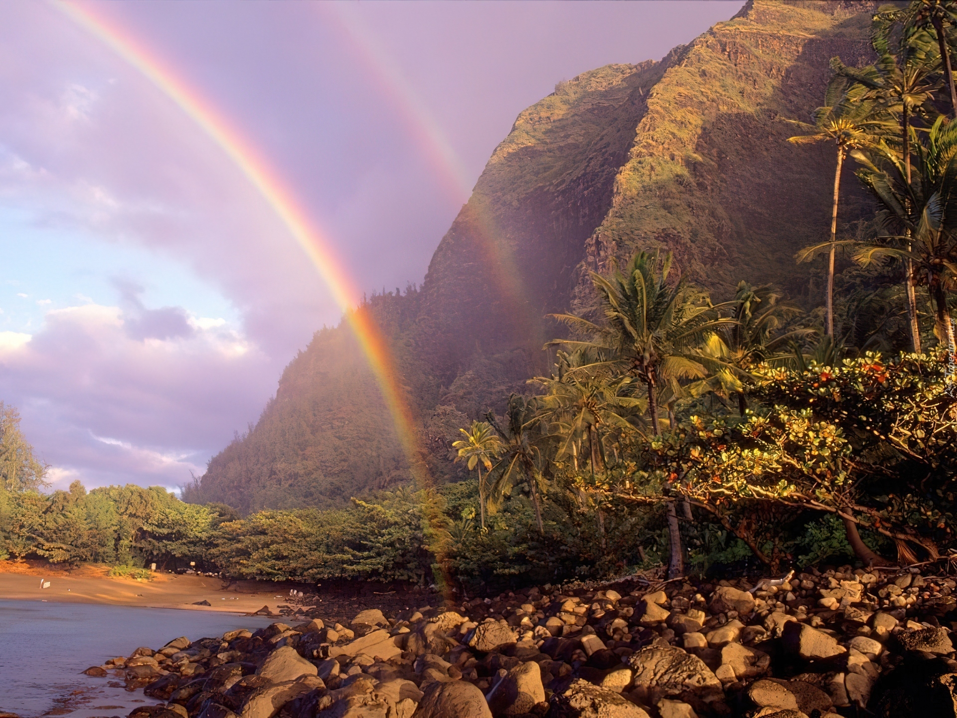 Edytor tapety: Tęcza, Skała, Góry