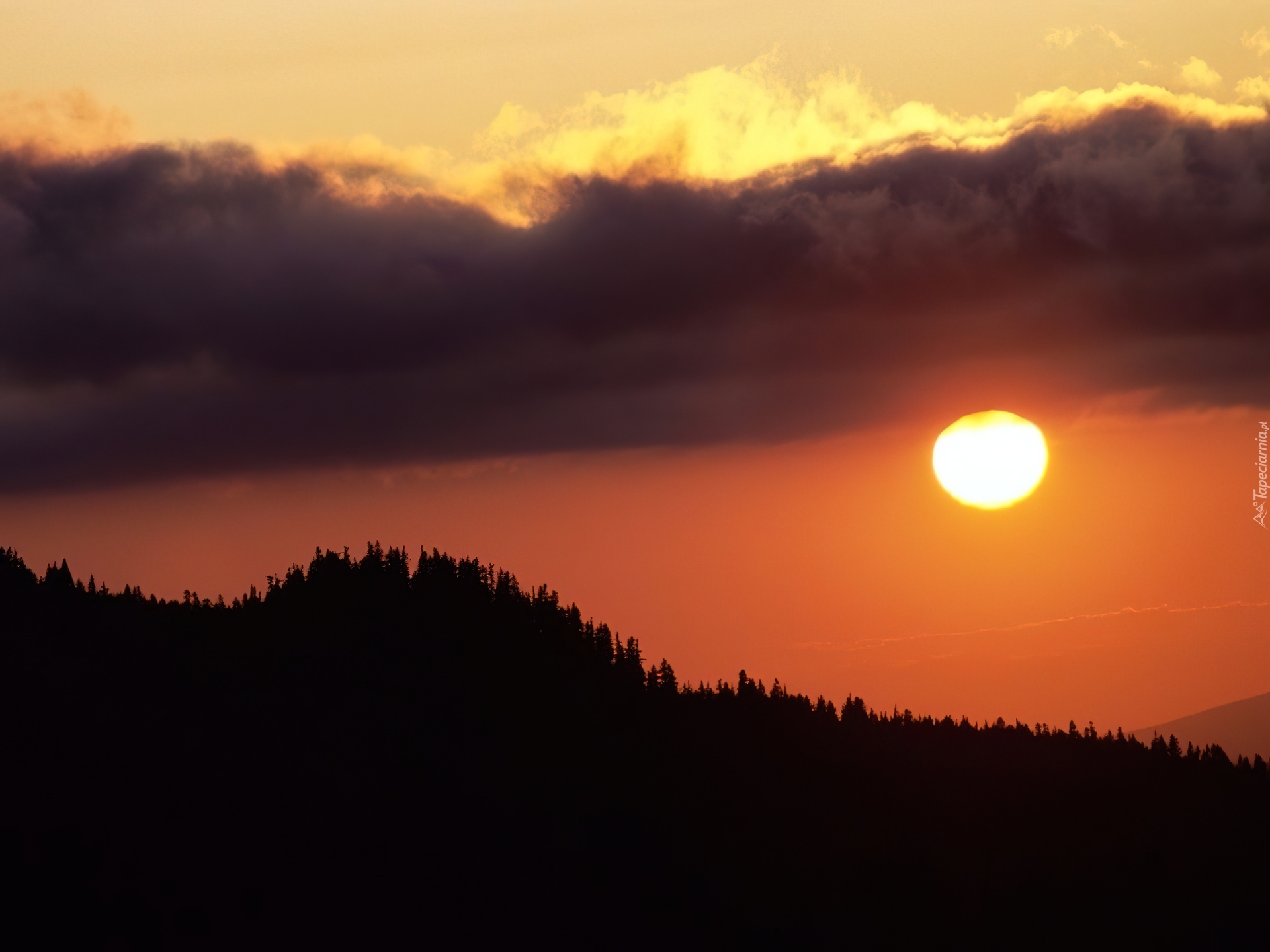 Edytor tapety: Zachód Słońca, Las, Chmura
