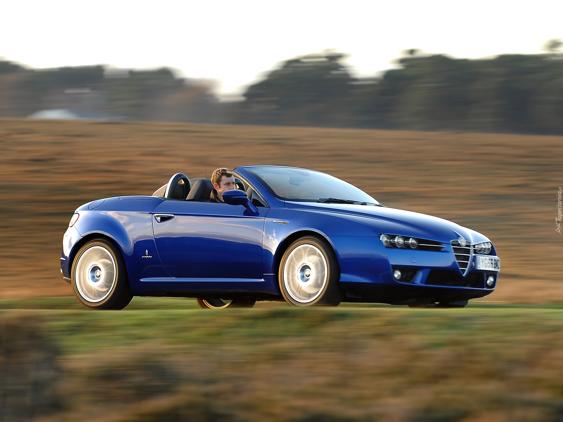 Edytor tapety: Niebieska, Alfa Romeo Spider, Jazda, Testowa