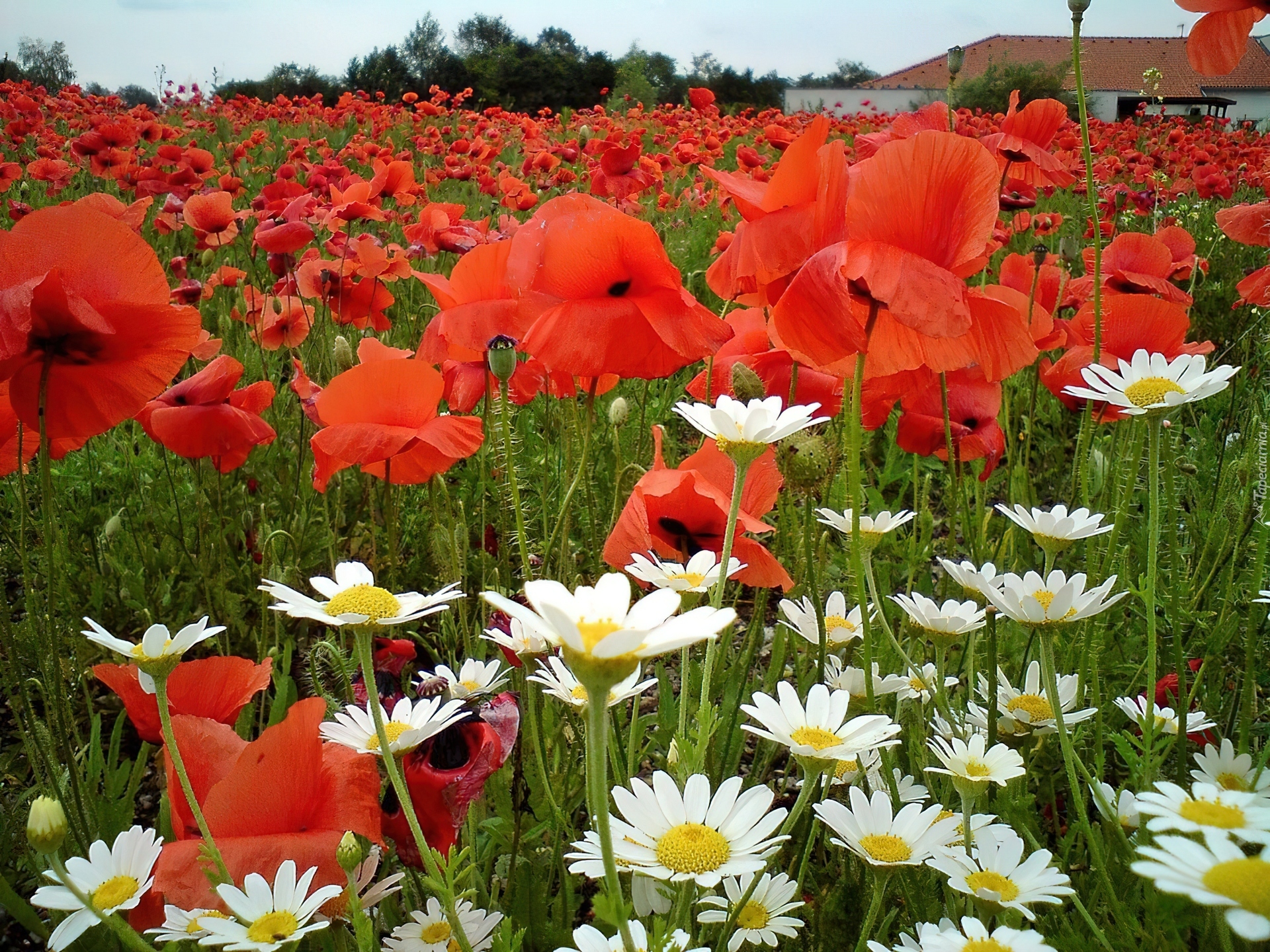 Edytor tapety: Mak, Łąka, Rumianek