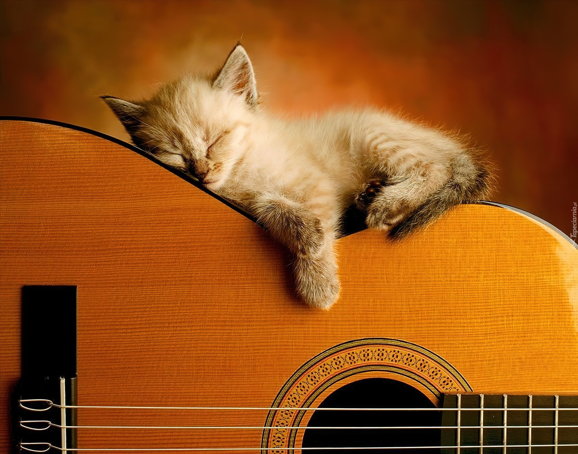 Edytor tapety: Kotek, Śpiący, Na, Gitarze