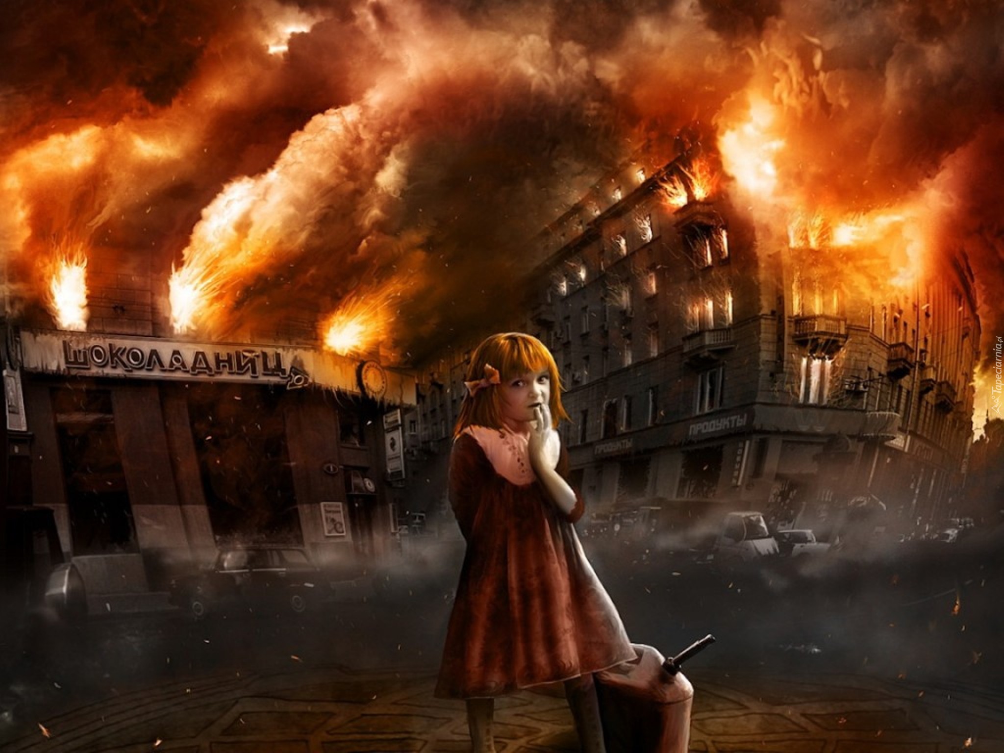 Edytor tapety: Pożar, Miasta, Dziecko
