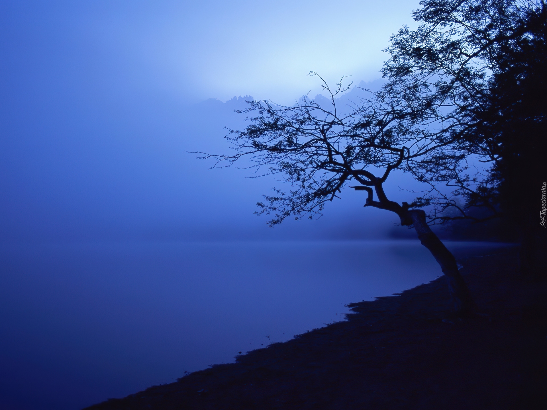 Edytor tapety: Jezioro, Mgła, Drzewo