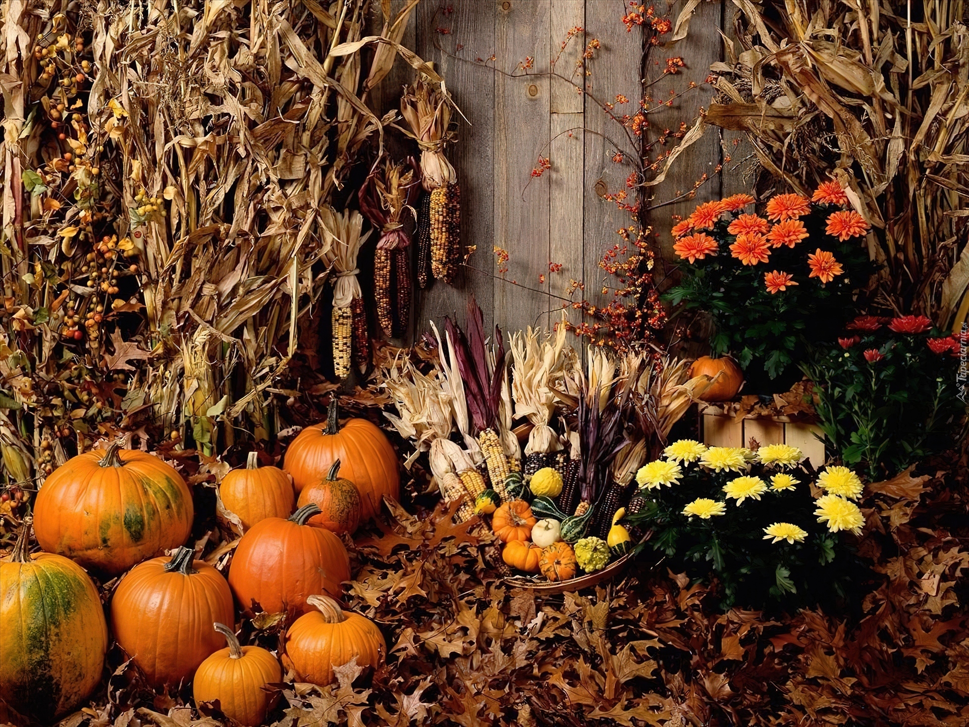 Edytor tapety: Bukiety, Chryzantemy, Dynie, Jesień, Ogród, Warzywa