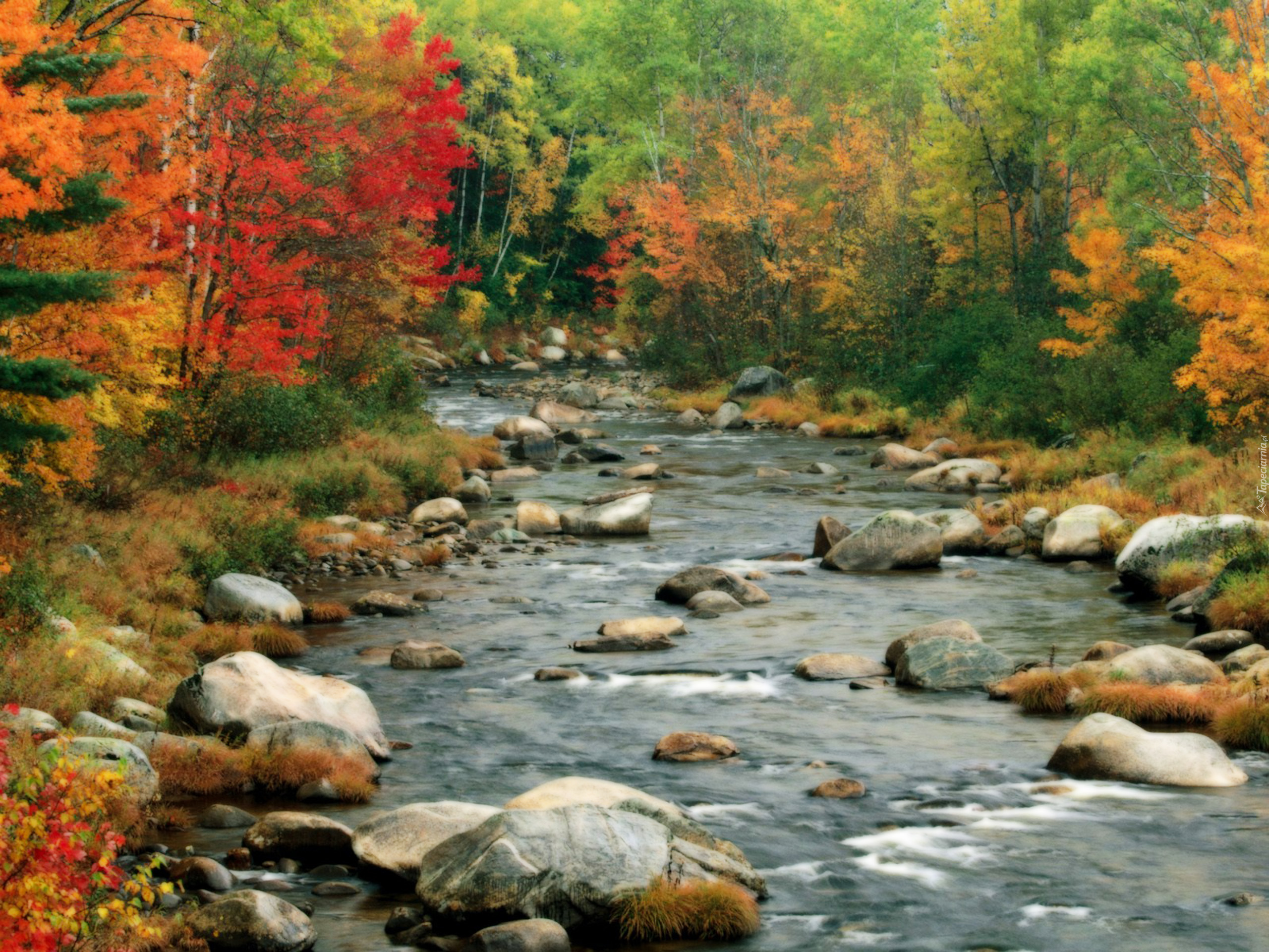 Edytor tapety: Jesień, Rzeka, Kamienie, Las