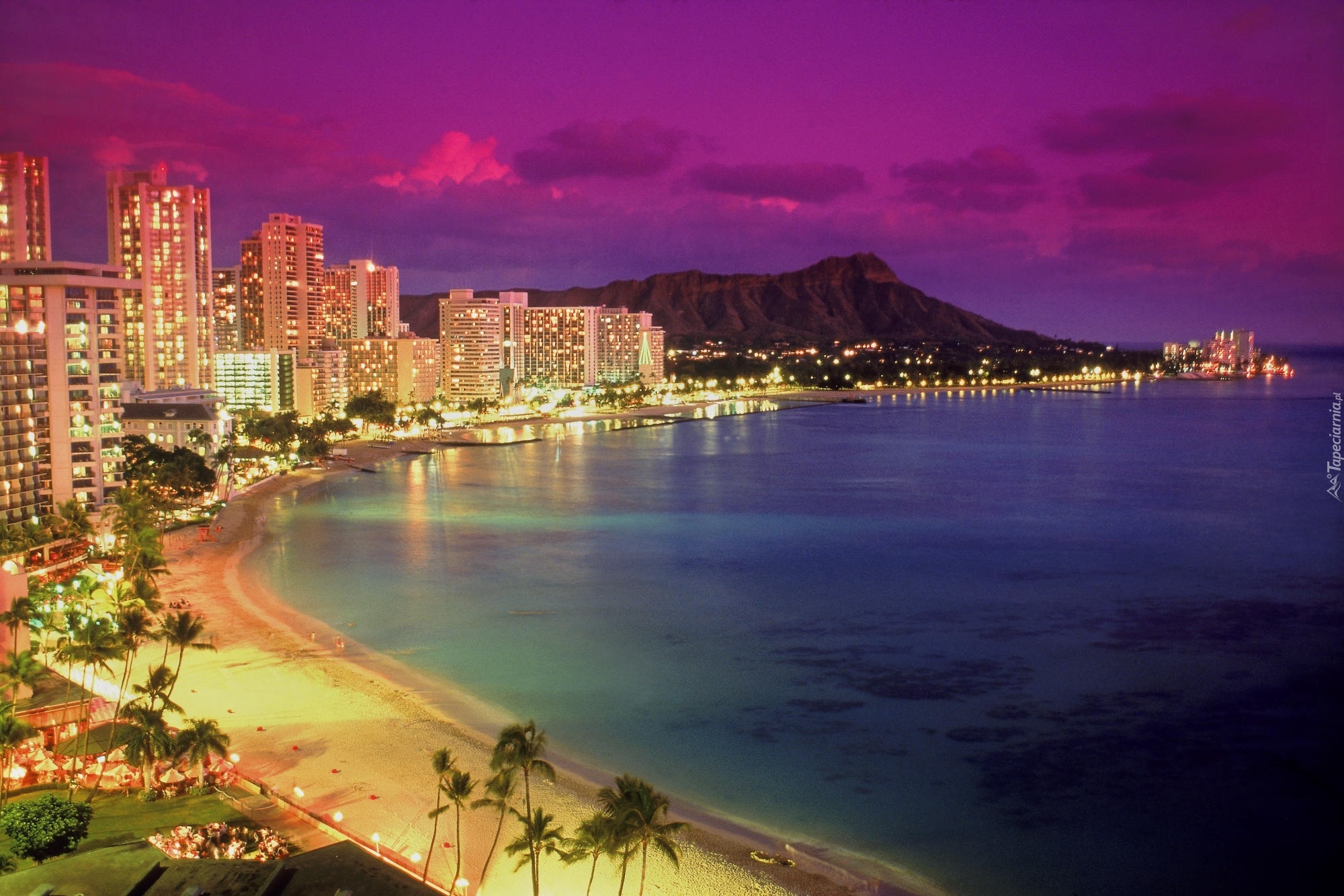 Edytor tapety: Wyspa, Waikiki, Hawaje, Zachód, Słońca