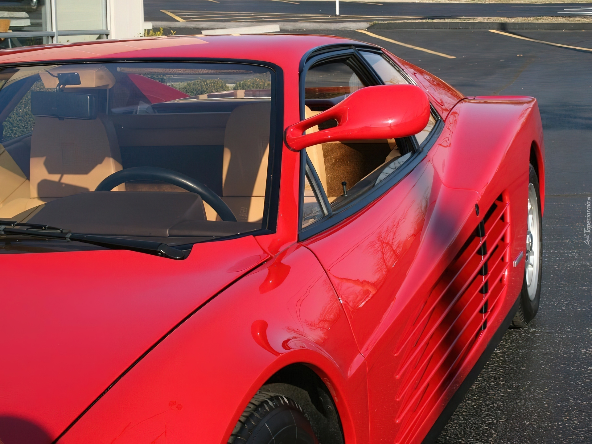 Edytor tapety: Bok, Ferrari Testarossa, Lusterko