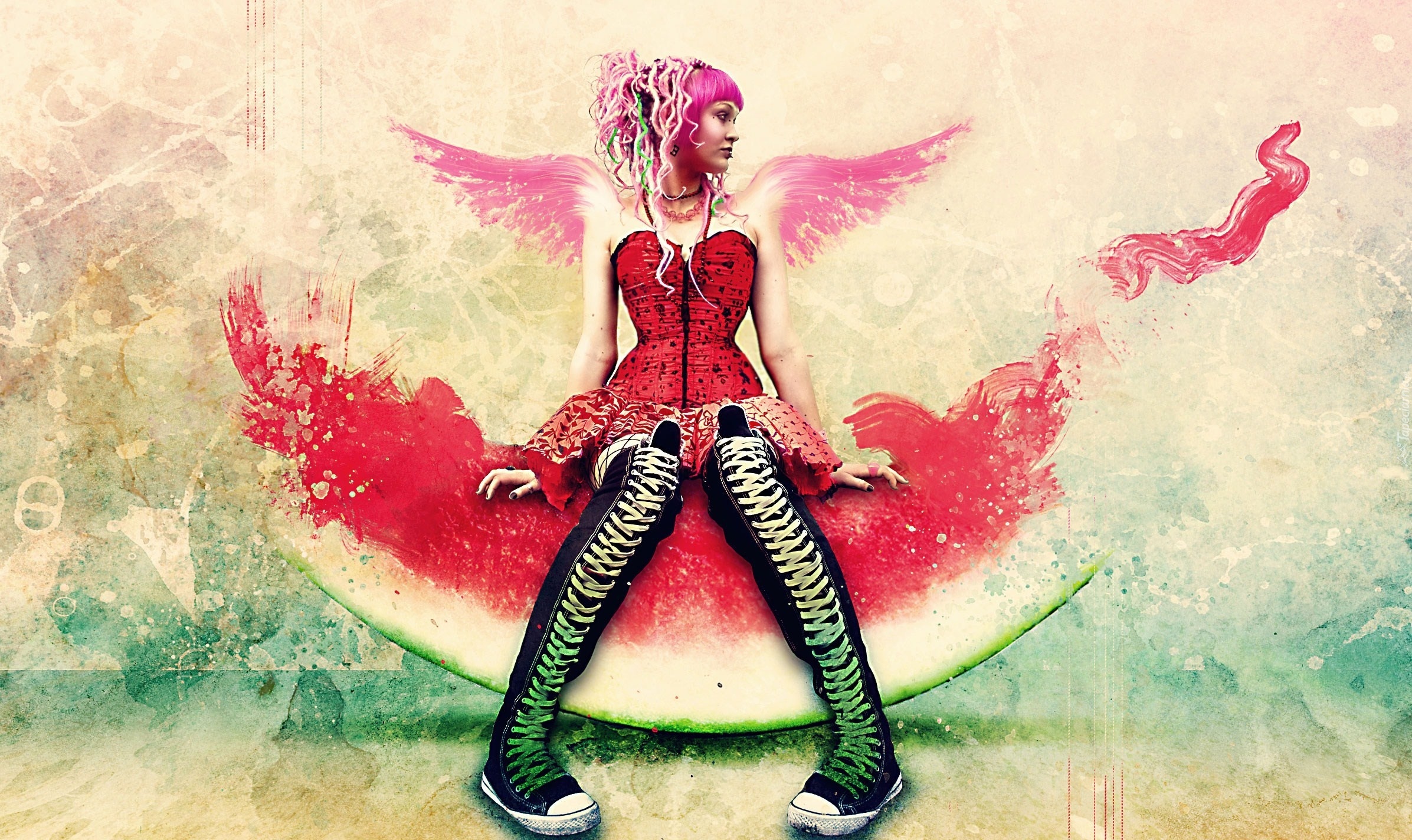 Edytor tapety: Kobieta, Arbuz, Skrzydła