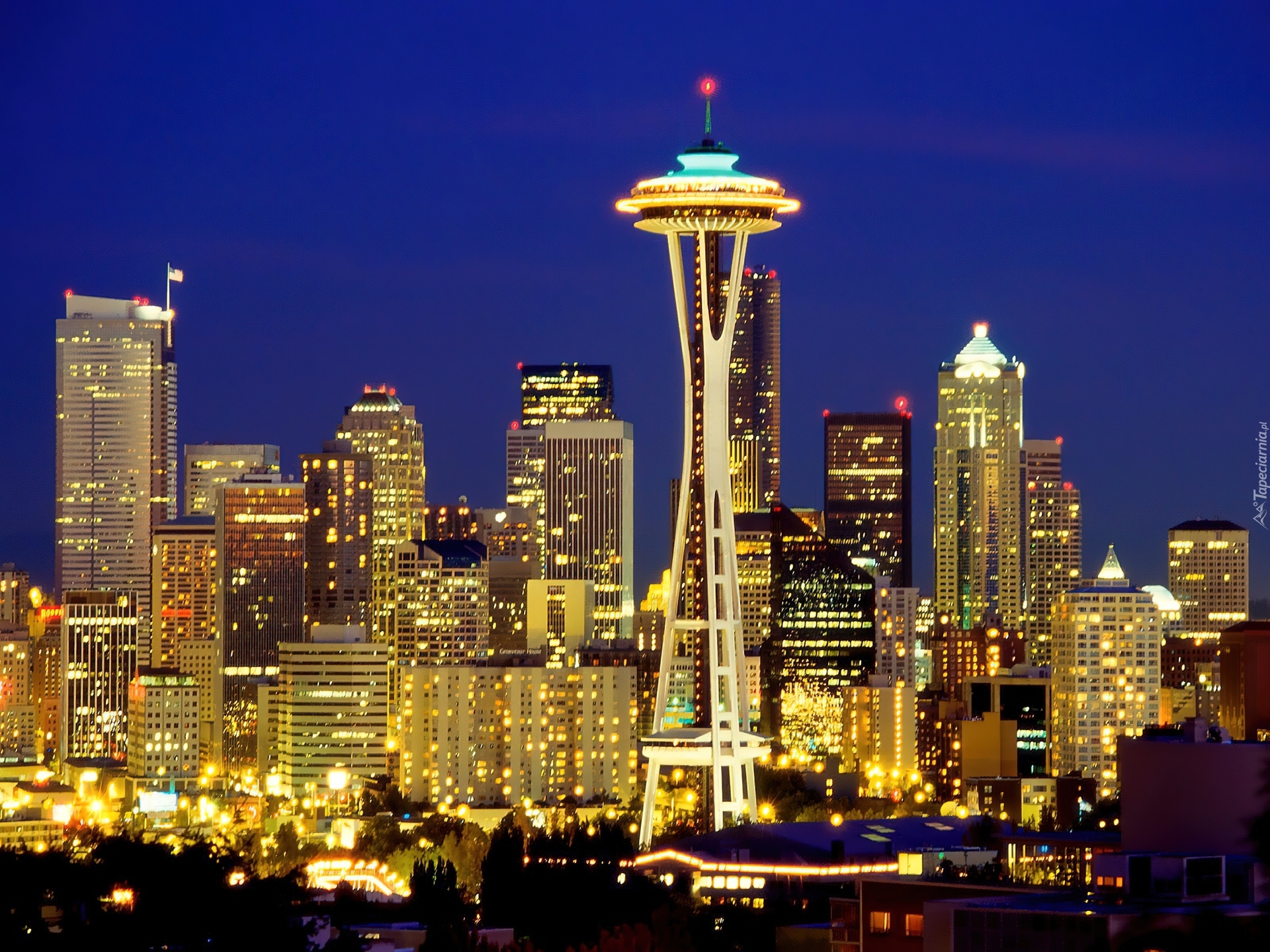 Edytor tapety: Stany Zjednoczone, Seattle, Noc, Space, Needle