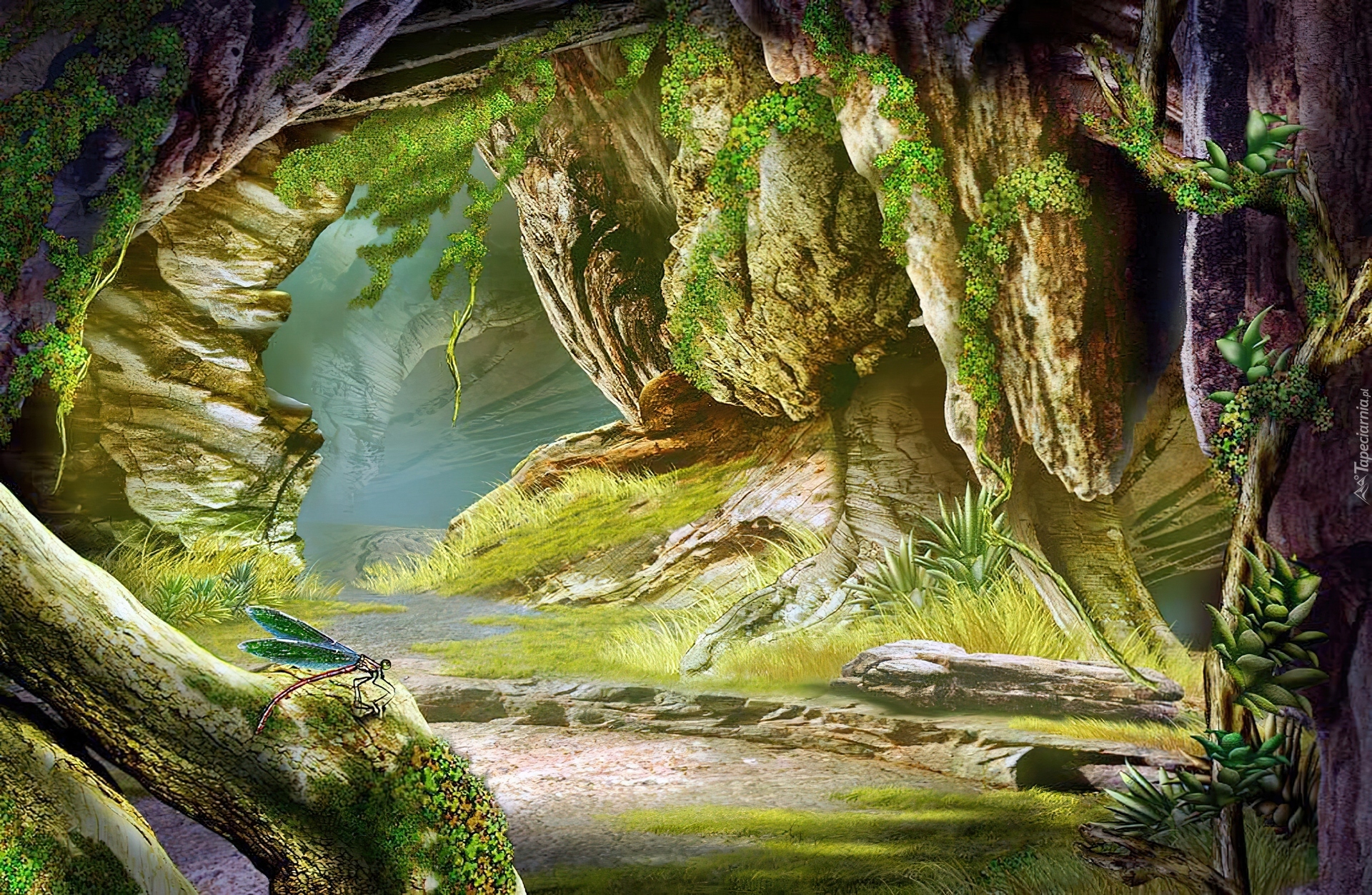 Edytor tapety: Rysunek, Ważka, Mech