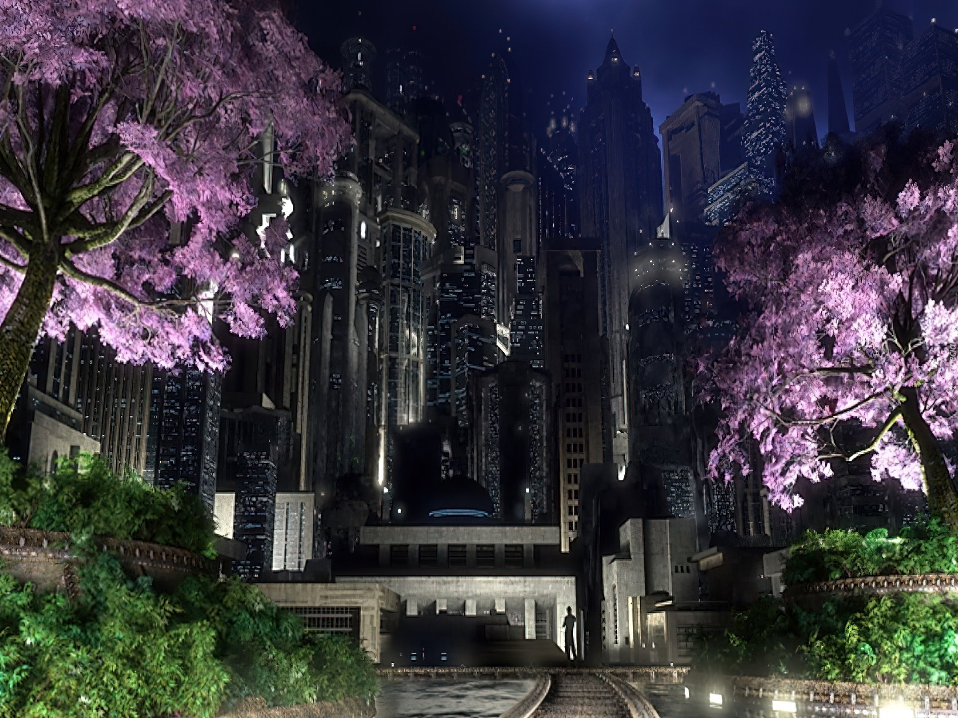 Edytor tapety: Miasto, Nocą, Postać, Człowieka
