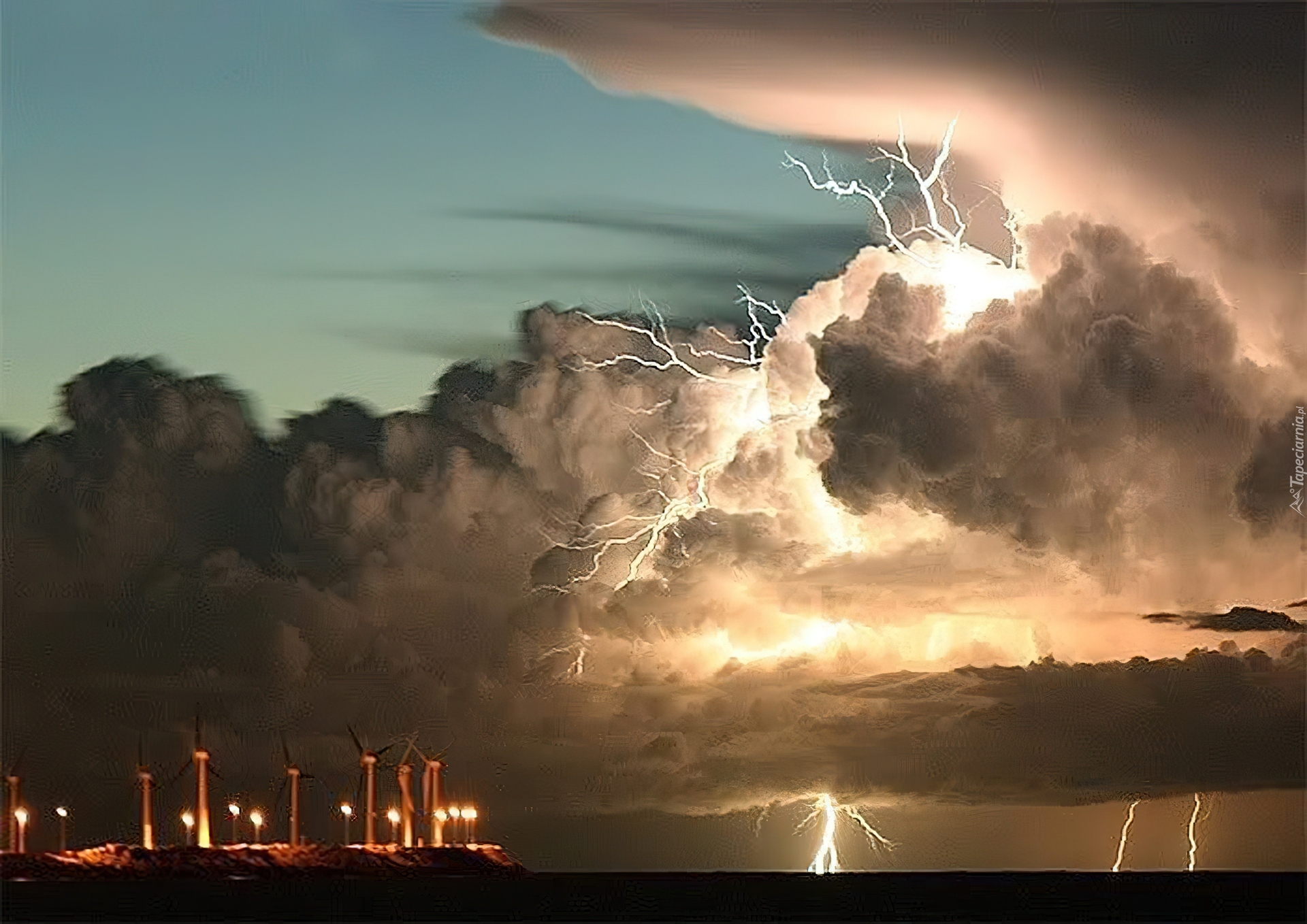 Edytor tapety: Burza, Nad, Elektrownią, Wiatrową