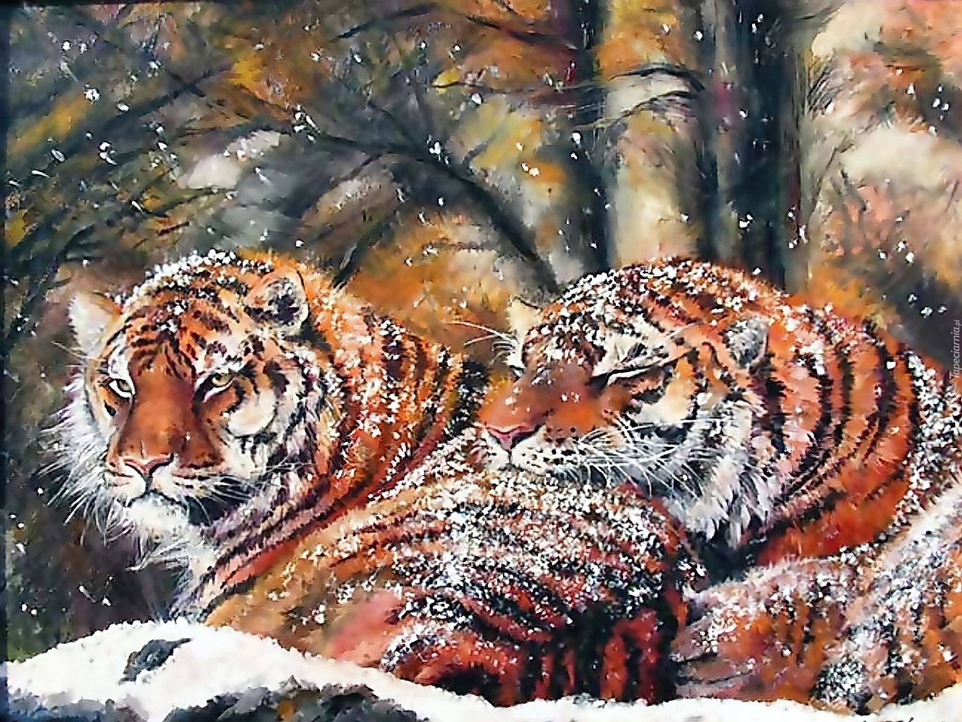 Edytor tapety: Tygrysy, Zimą