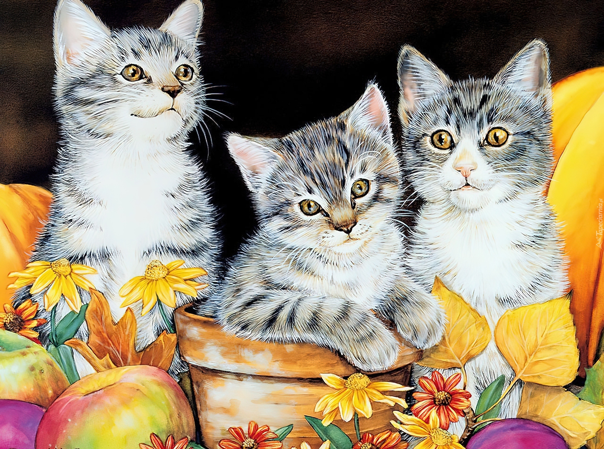 Edytor tapety: Trzy, Kotki, Dachowce