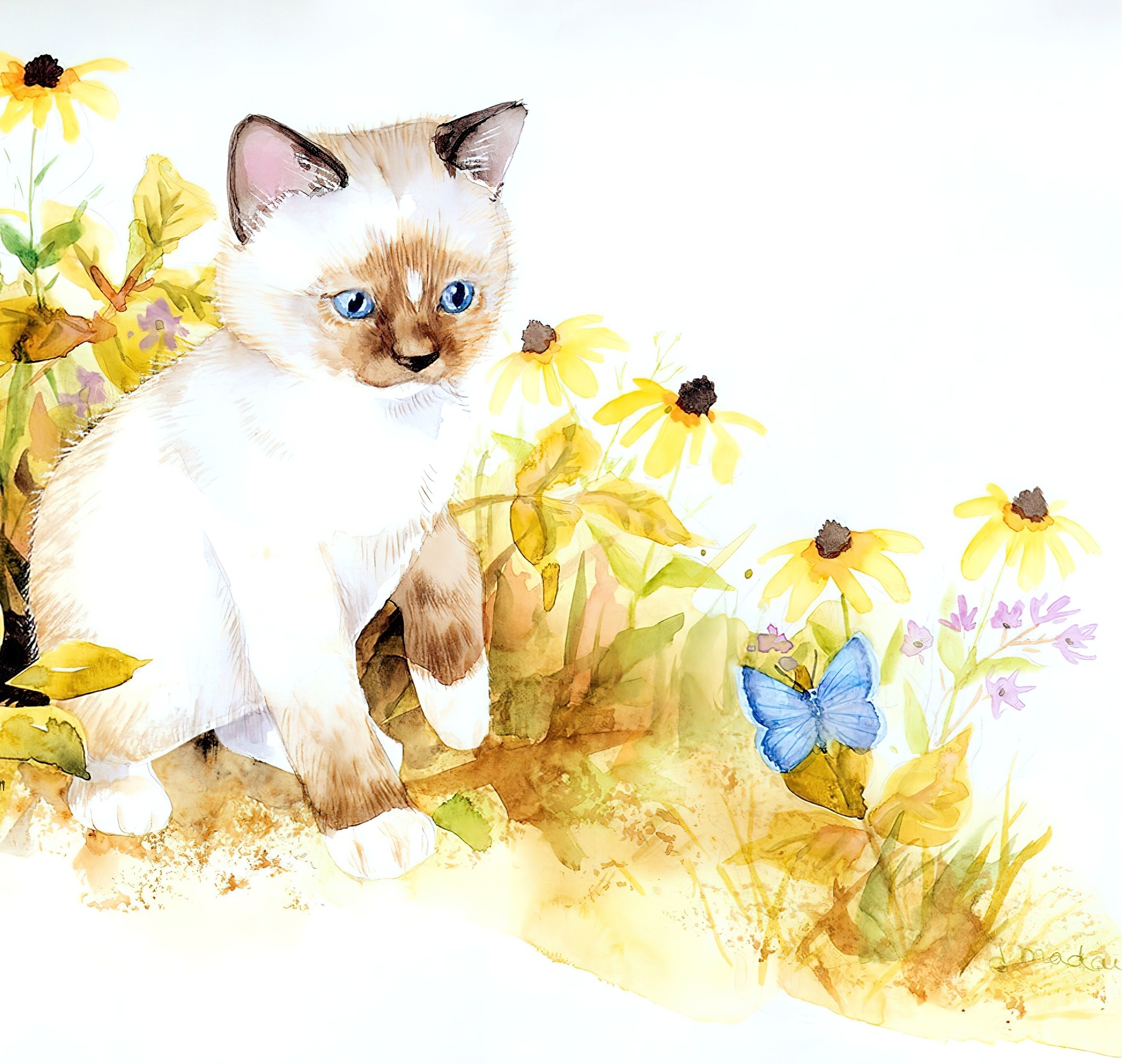 Edytor tapety: Kot, Łąka, Motyl