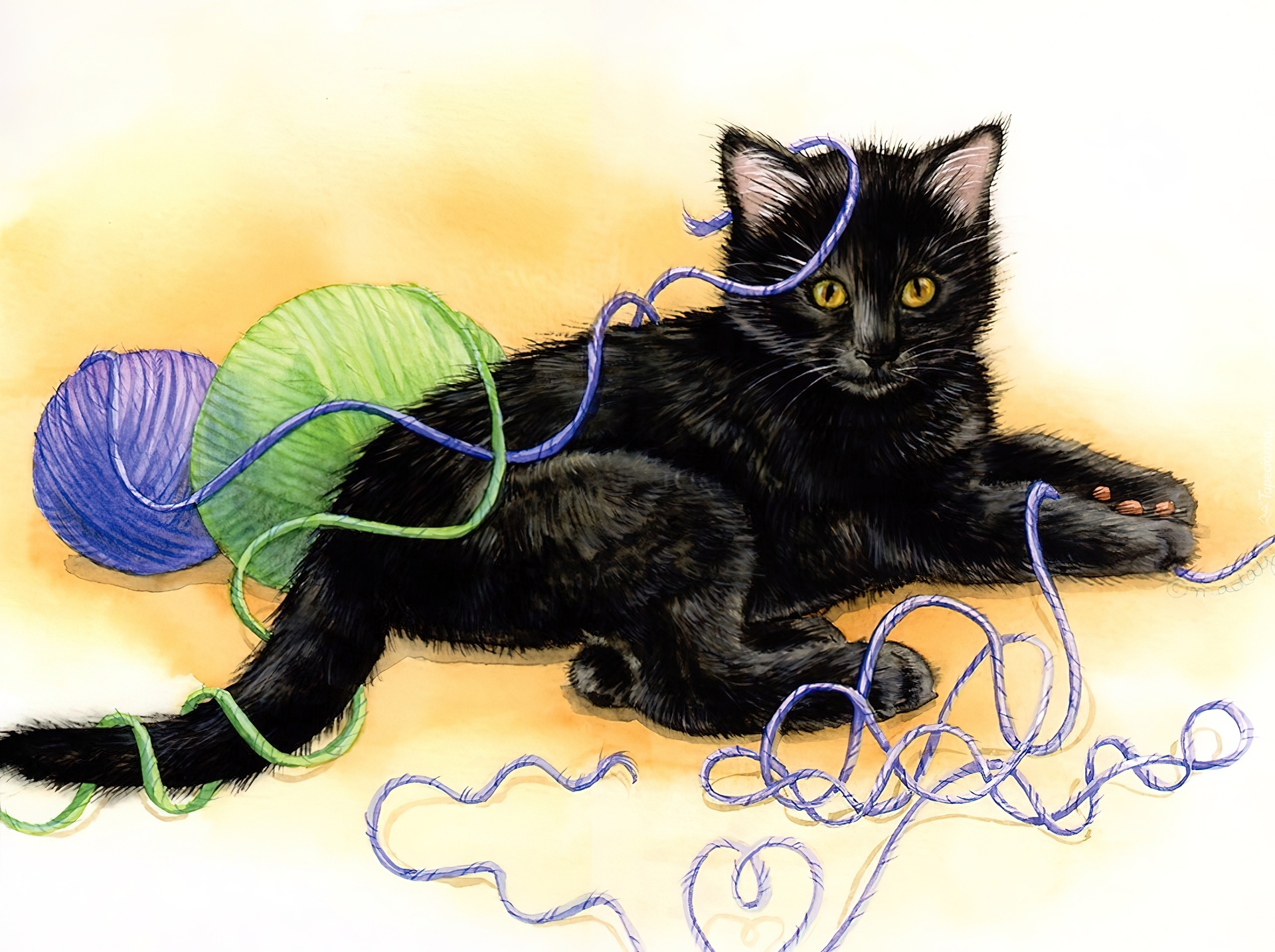 Edytor tapety: Kot, Kłębek, Włóczki