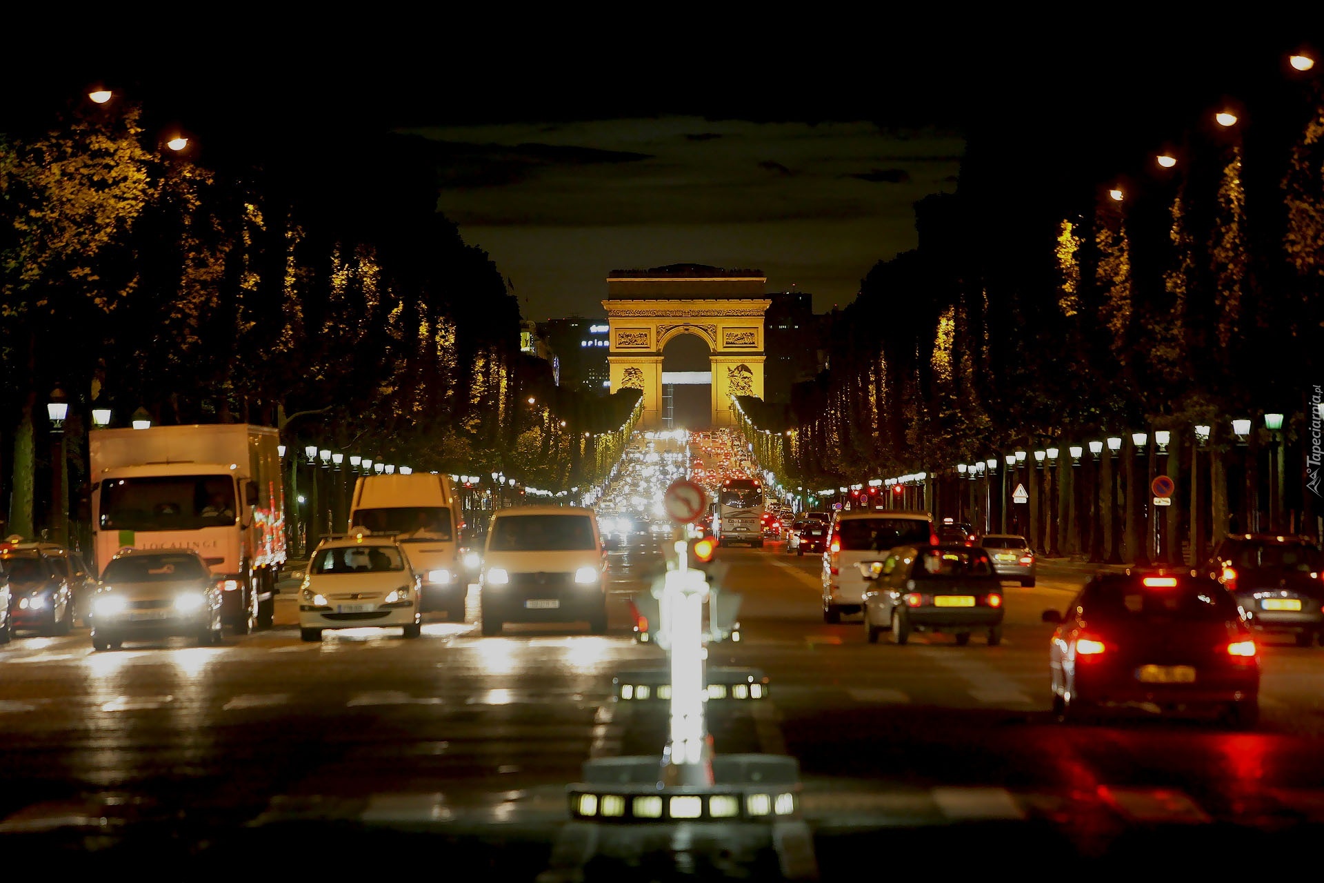 Edytor tapety: Paryż, Pola Elizejskie, Noc, Łuk Tryumfalny