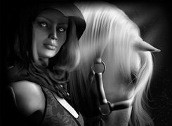 Edytor tapety: Kobieta, Biały, Koń, Noc