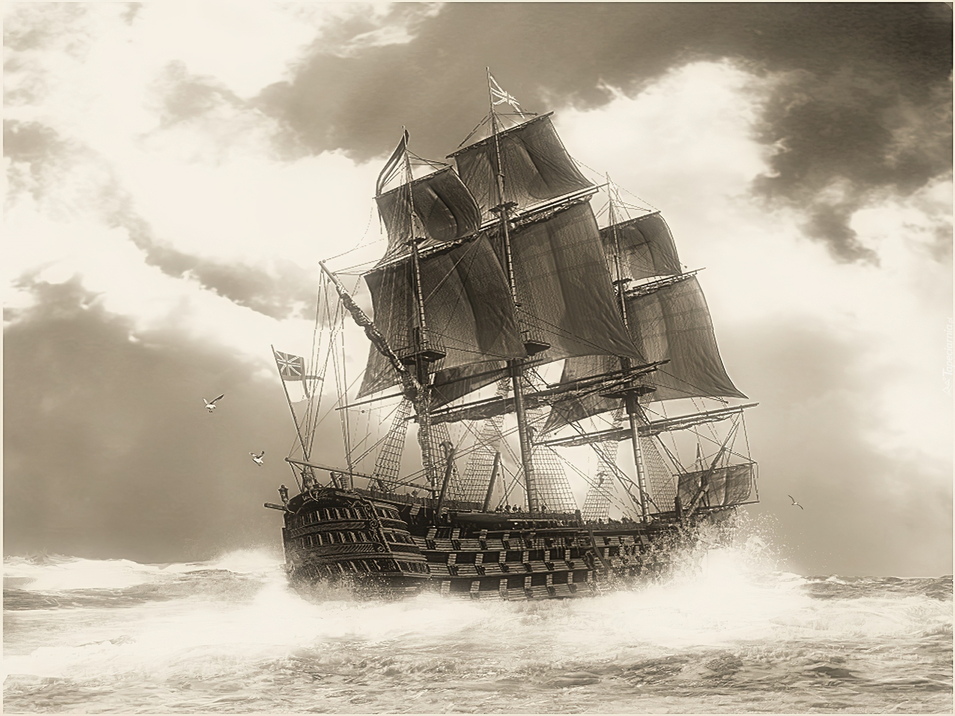 Edytor tapety: Żaglowiec, Sztorm