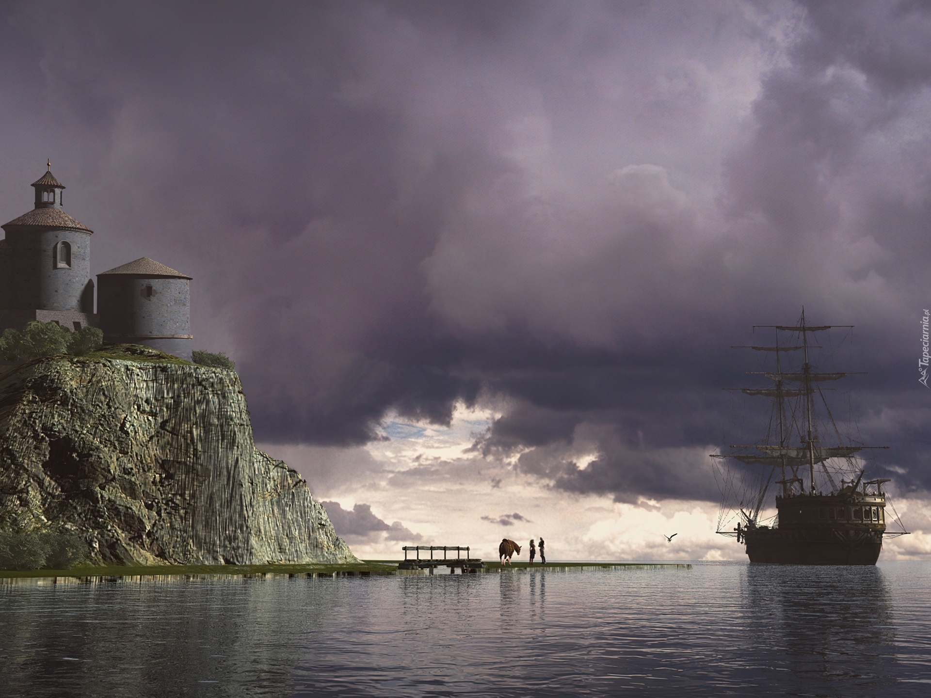 Edytor tapety: Żaglowiec, Latarnia, Pomost