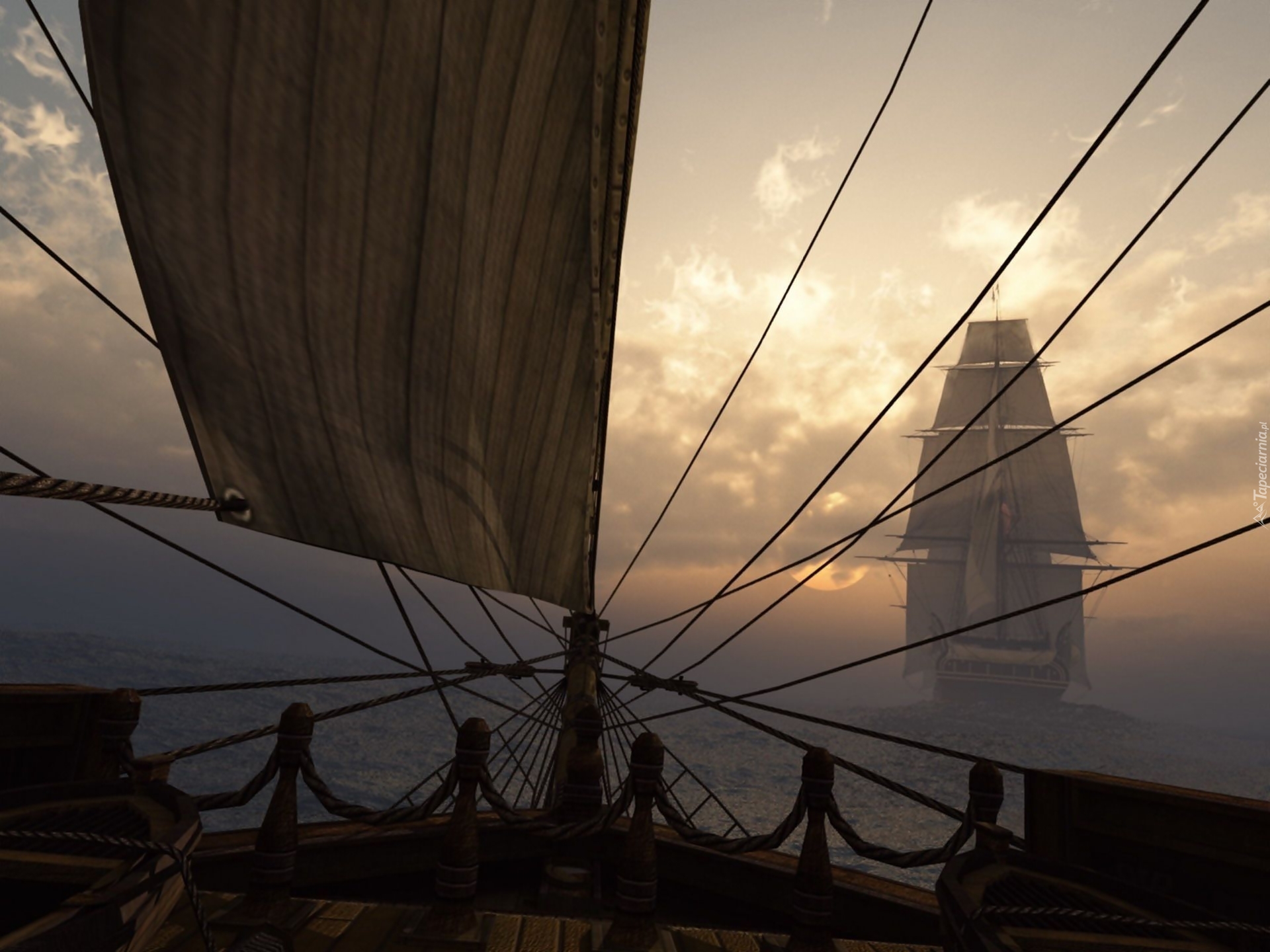 Edytor tapety: Żaglowiec, Dziób, Liny, Fok