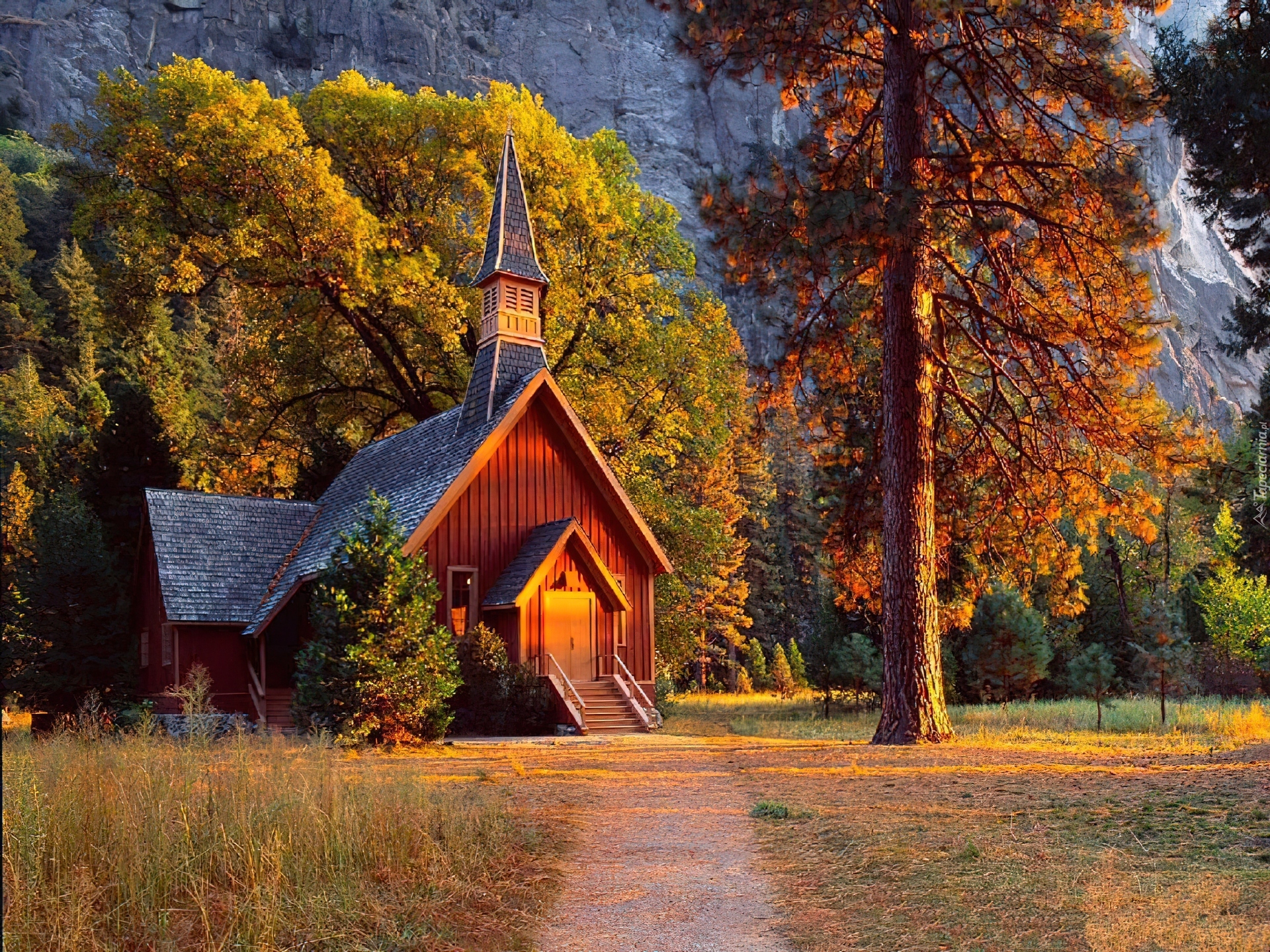 Edytor tapety: Kościółek, Góry, Kolory, Jesieni