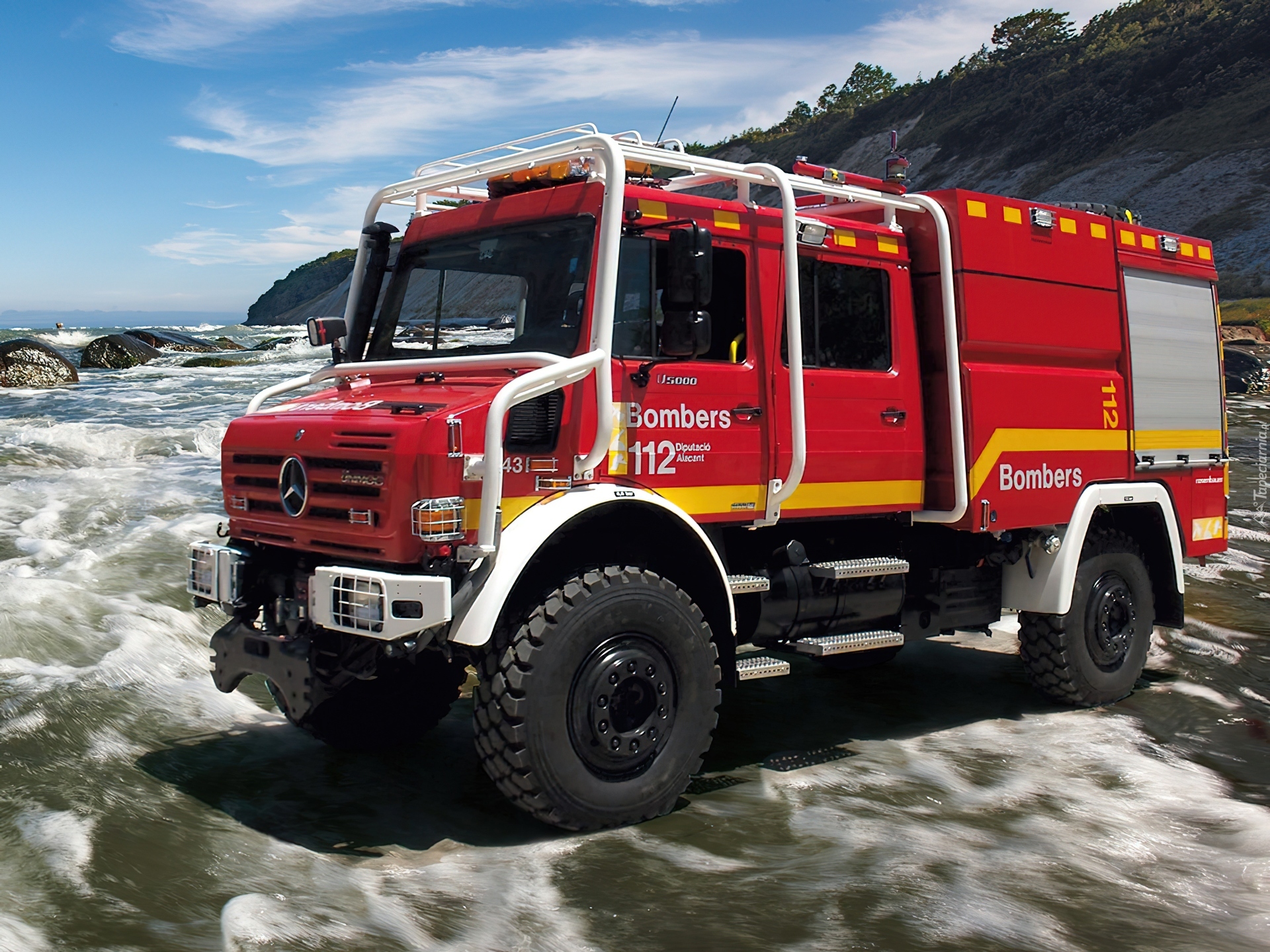 Edytor tapety: Mercedes, Strażacki, Plaża