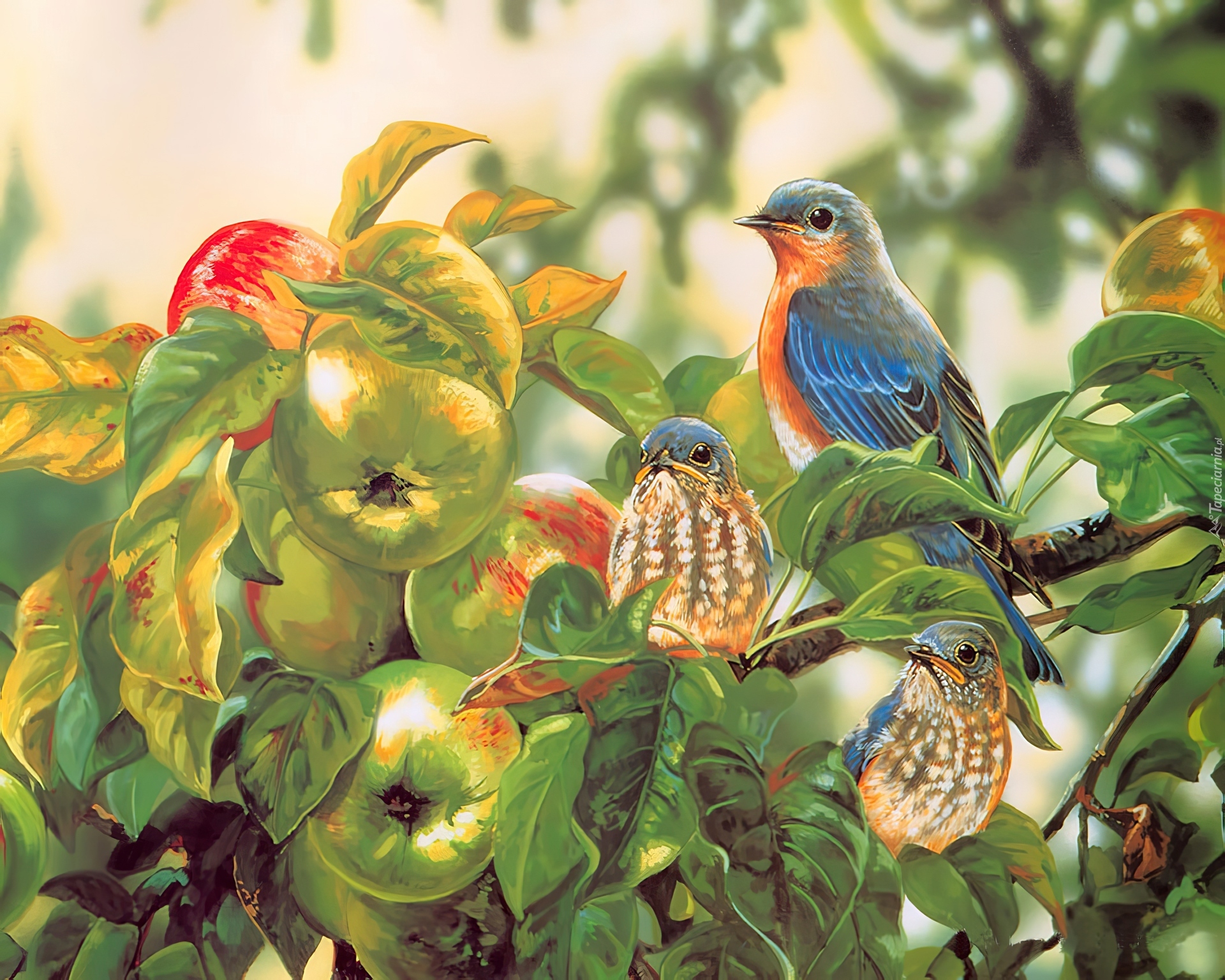 Edytor tapety: Jabłoń, Ptaszki, Obraz