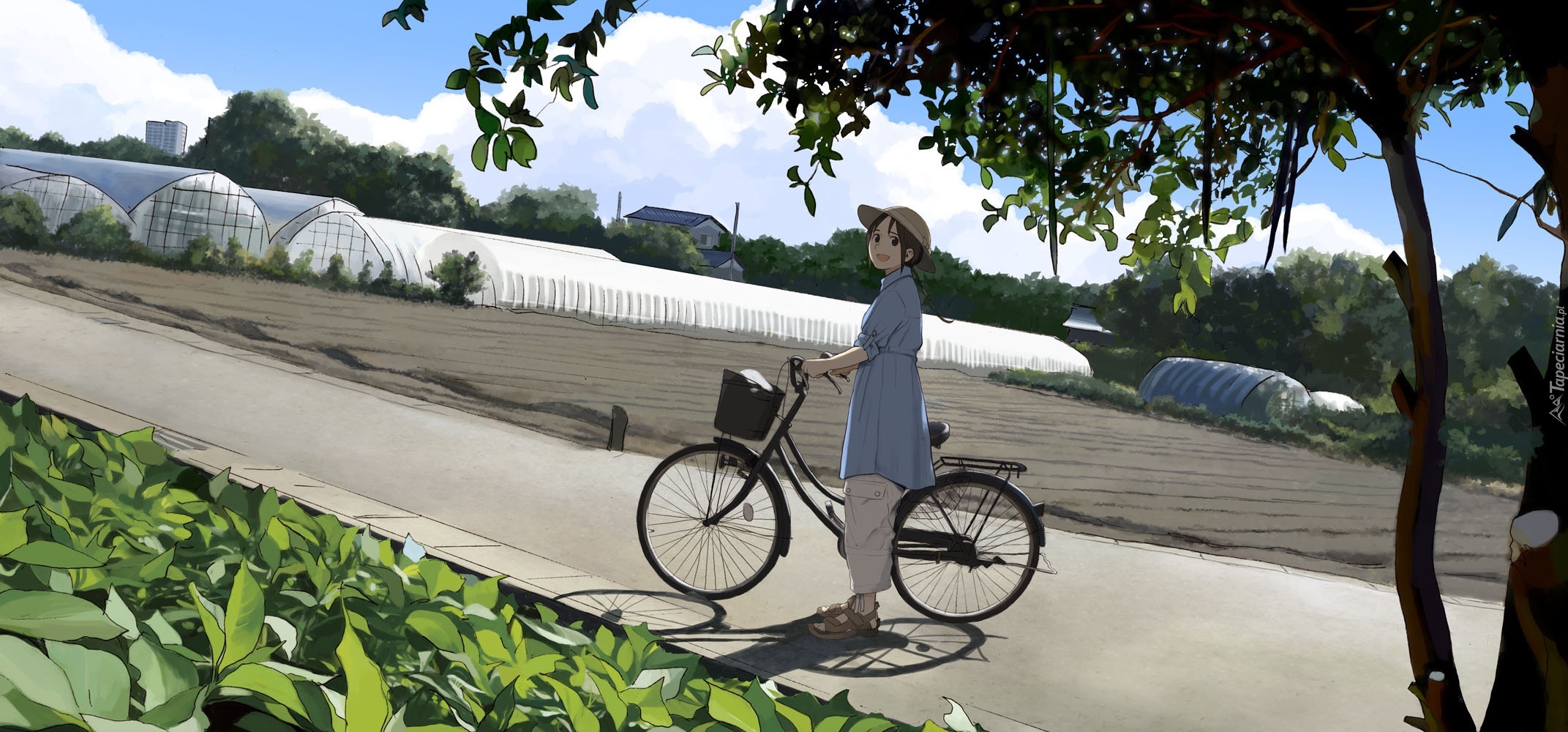Edytor tapety: Manga, Rower, Kobieta, Szklarnia