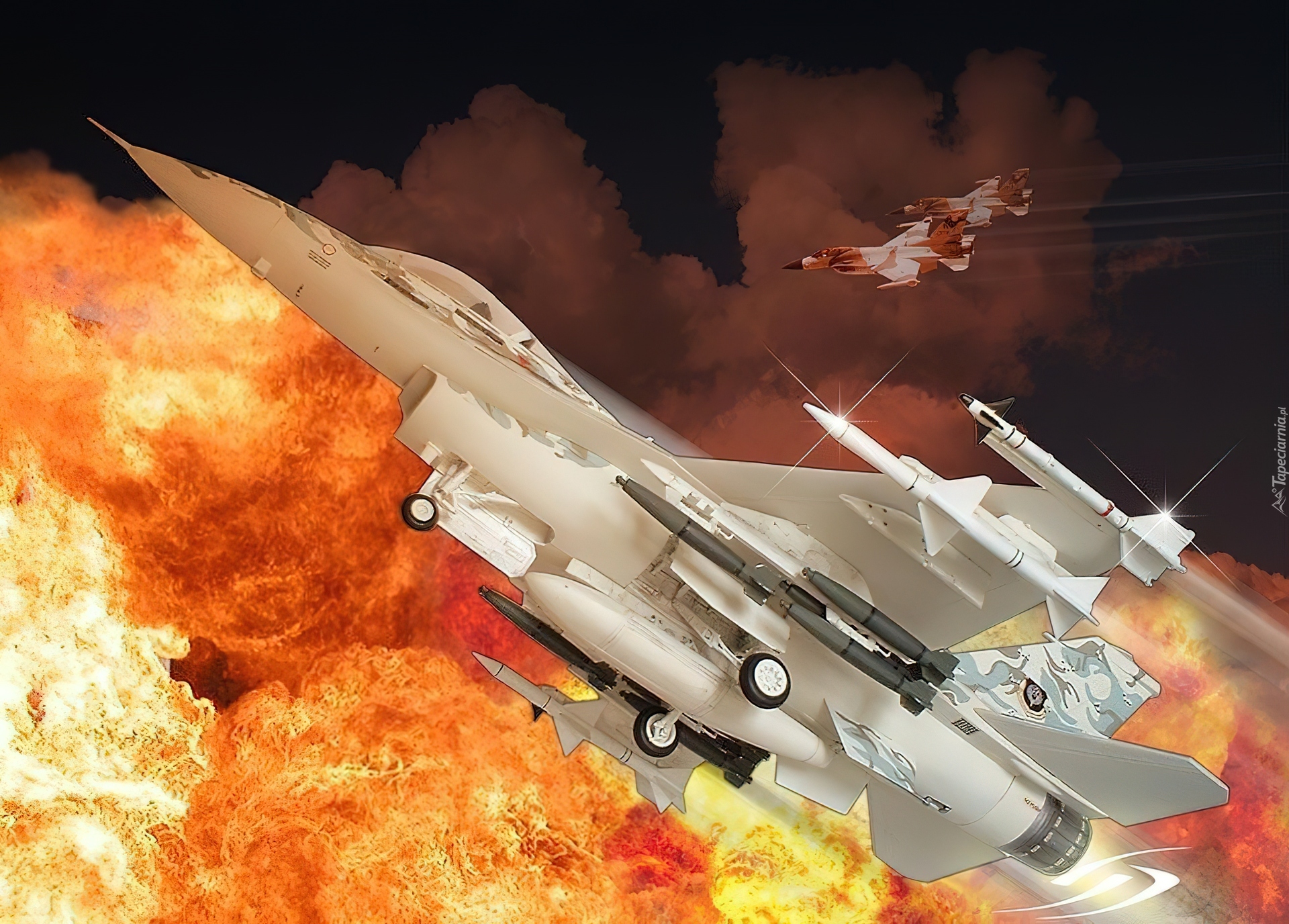 Edytor tapety: F-16, Falcon, Wybuch, Rakiety