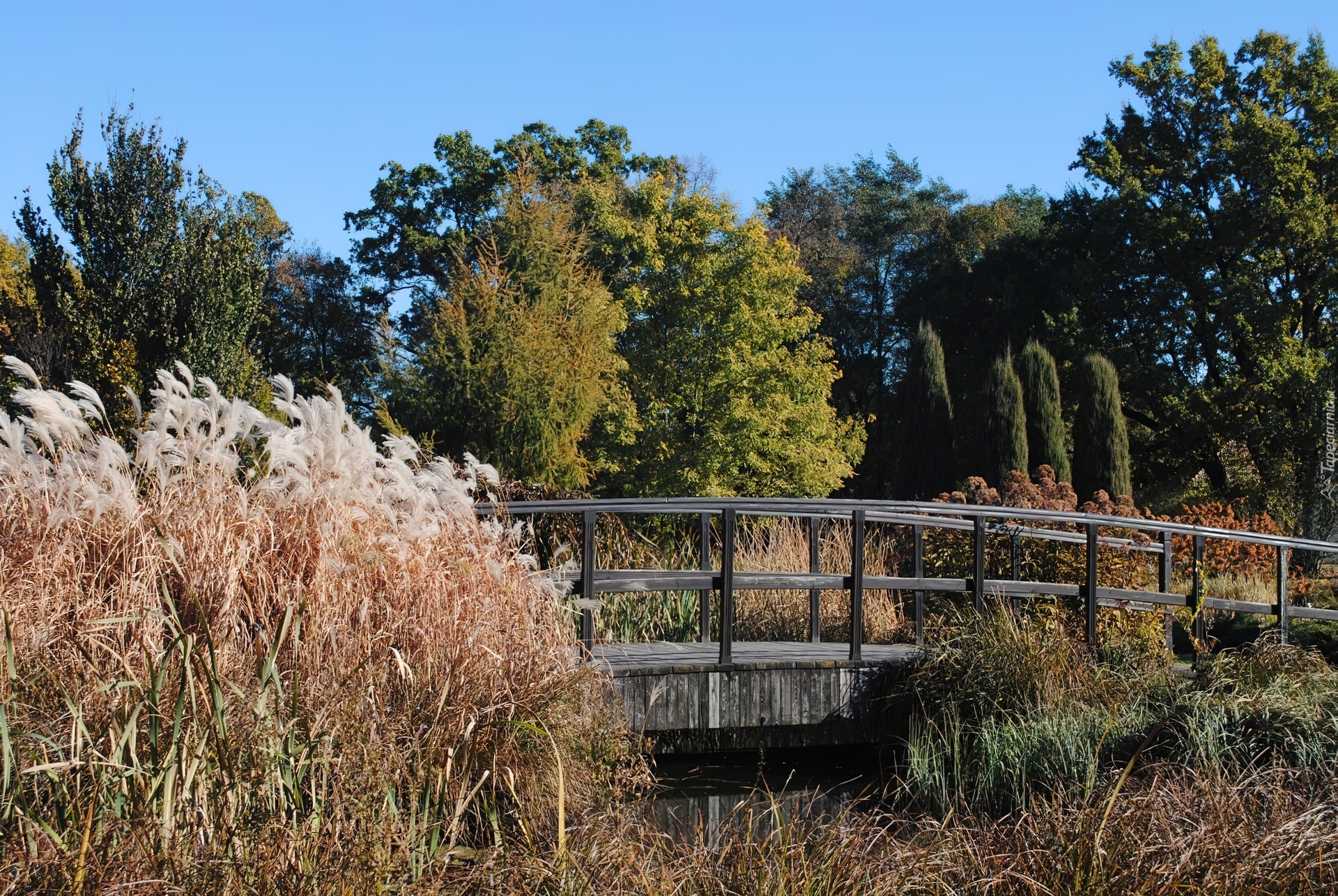 Edytor tapety: Jesień, Mostek, Ogród